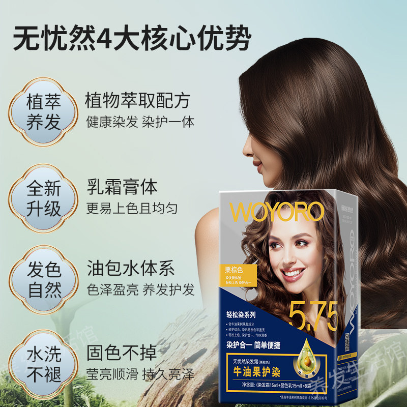 无忧然植物营养染发霜自然黑色棕色遮盖白发自染焗油膏袋装染发剂