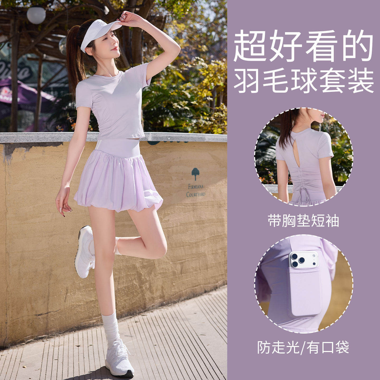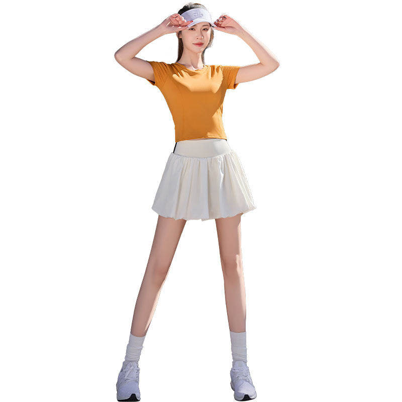 高颜值跑步套装女户外网球服薄款运动上衣蓬蓬花苞裙瑜伽健身衣裤