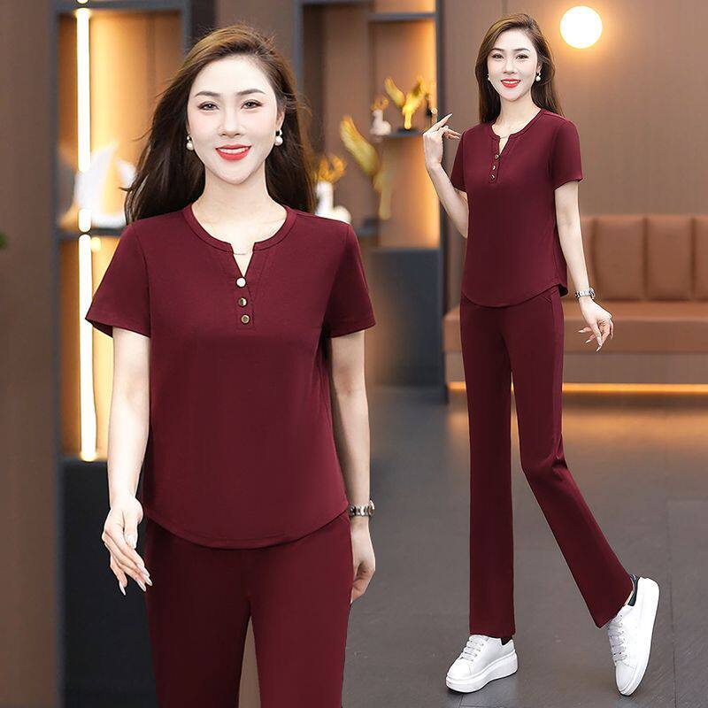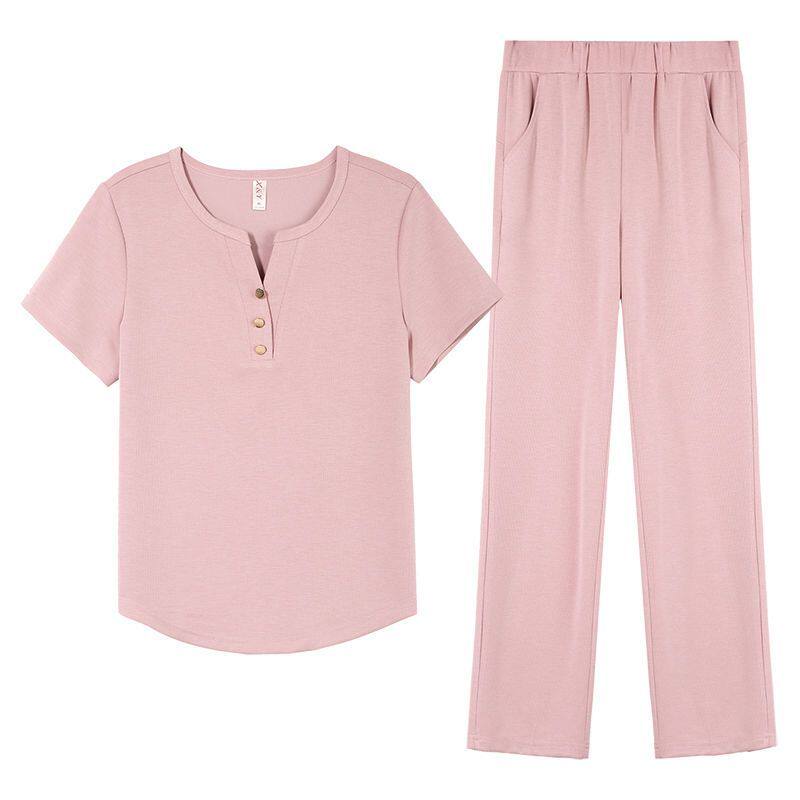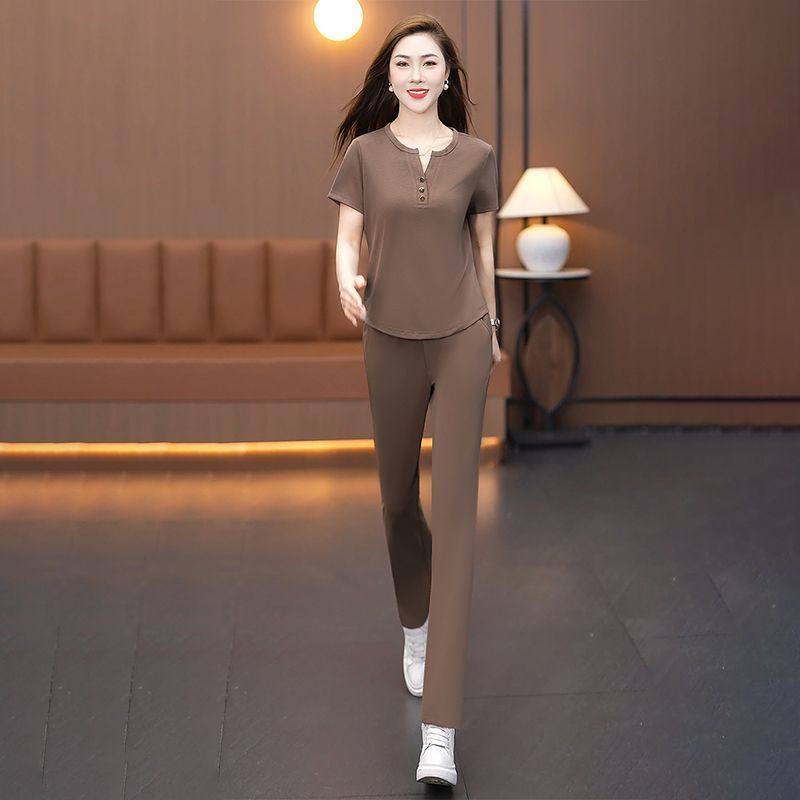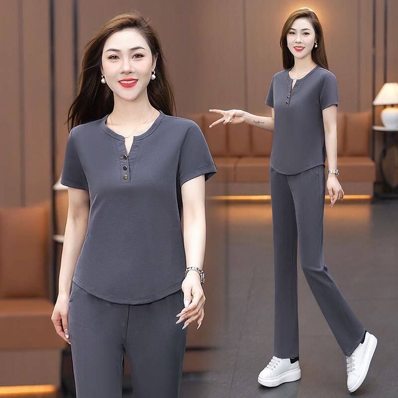 运动套装女夏装2026新款小个子时尚减龄薄款短袖休闲阔腿裤两件套