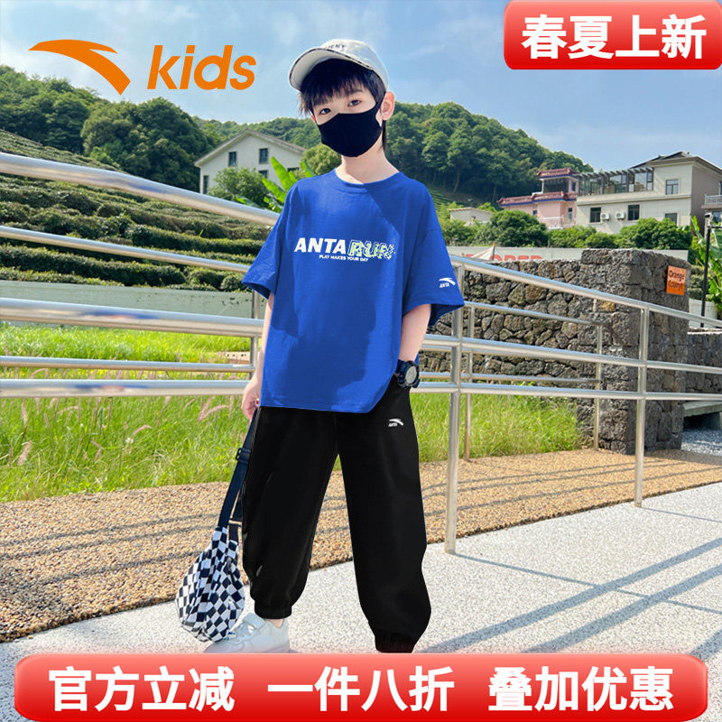 安踏童装儿童运动速干套装2026春夏男大童短袖t恤薄款长裤运动服