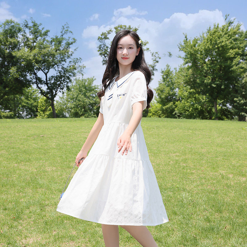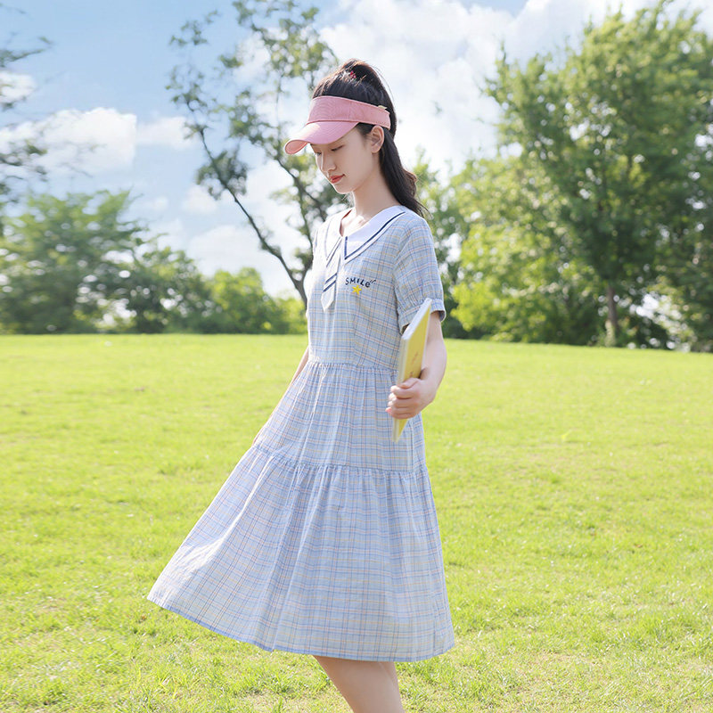 中学生格子连衣裙初中生少女夏装日系领结学院风高中生中长款裙子