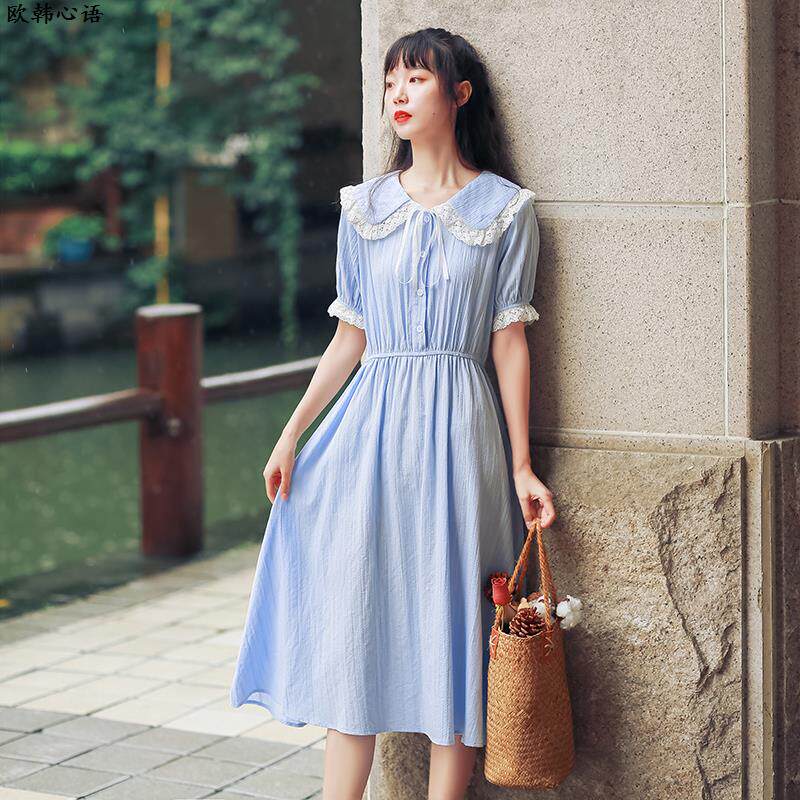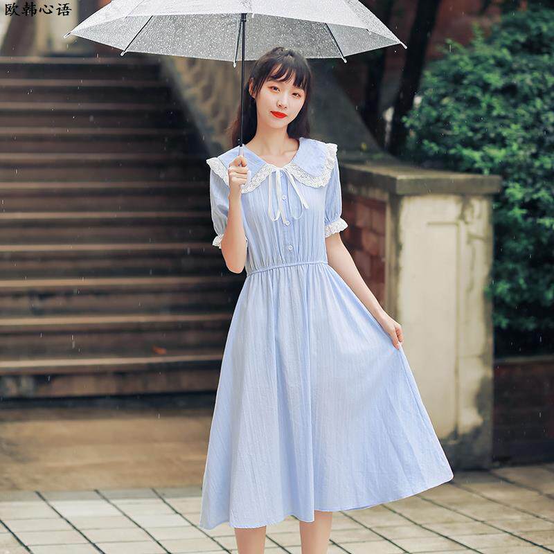 小清新连衣裙少女夏装2024新款初中高中学生学院风甜美中长款裙子
