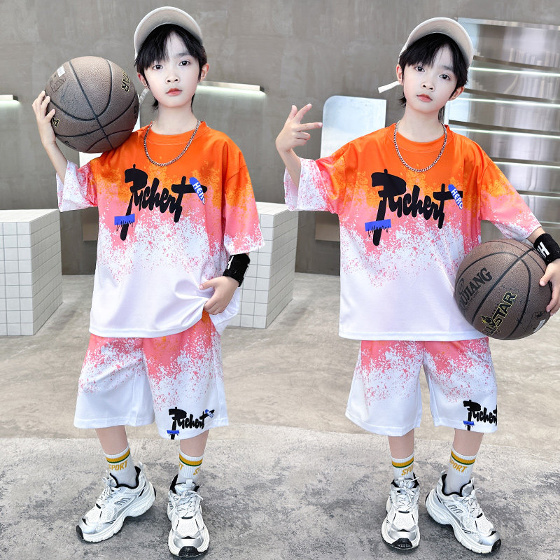 男童夏装套装短袖2026新款中大儿童洋气男孩夏季冰丝运动篮球服潮