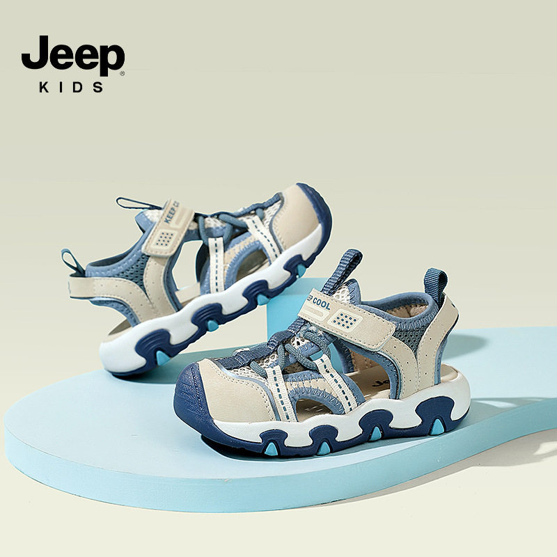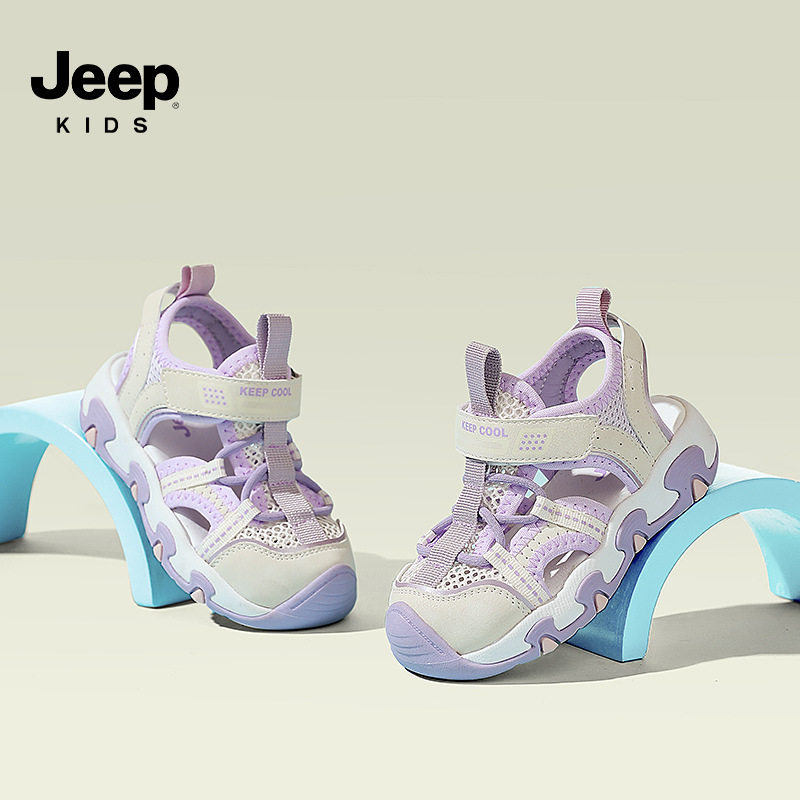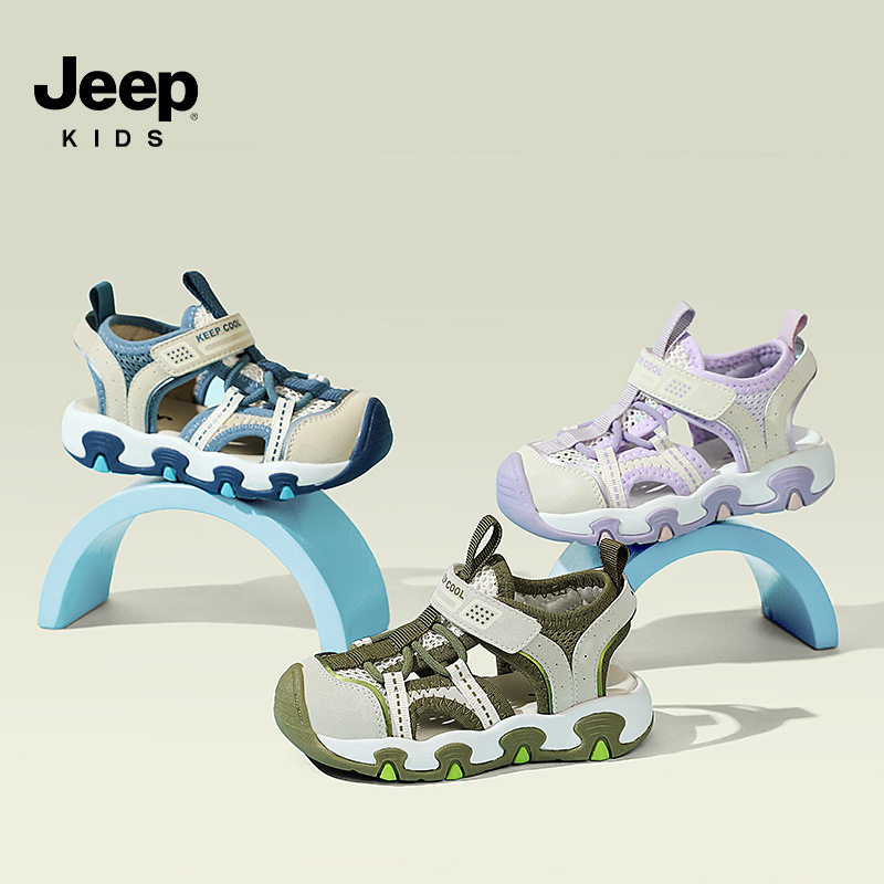 jeep吉普女童凉鞋2026夏季透气防滑新款魔术贴女宝宝小童包头3-6