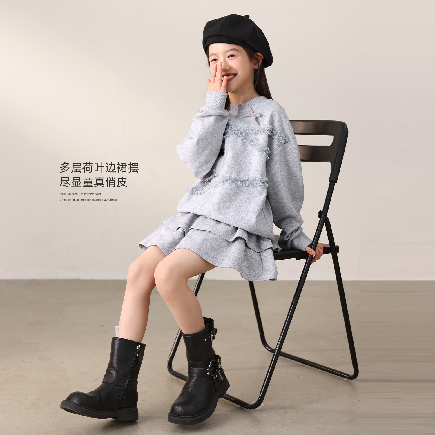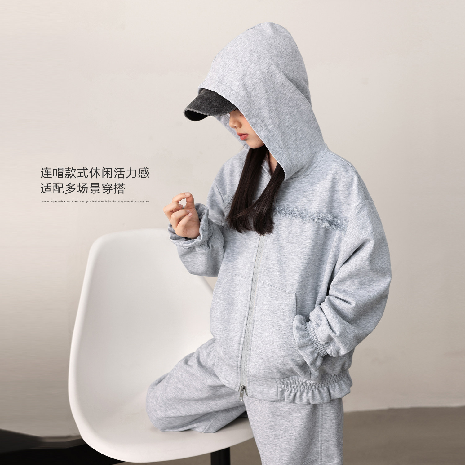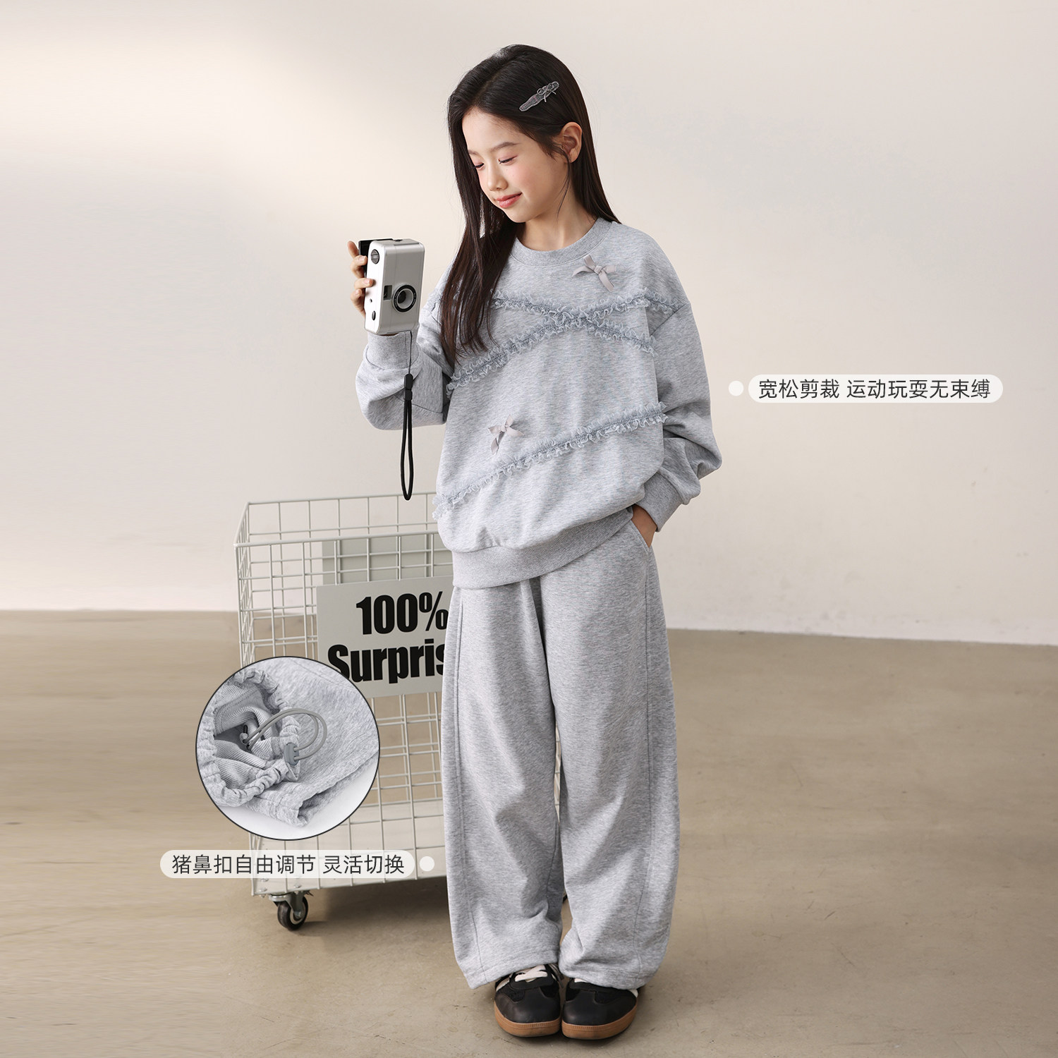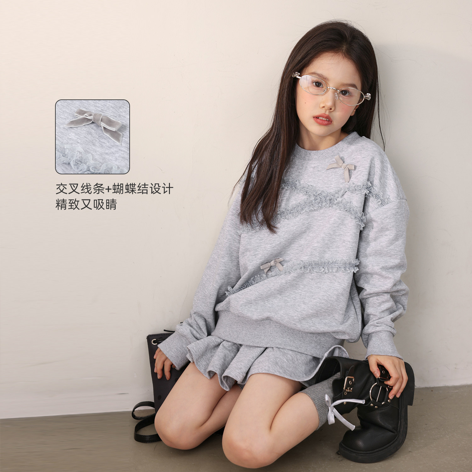 NORNOR陈大猪女童套装春季薄款外套好看卫衣儿童休闲运动裤子短裙