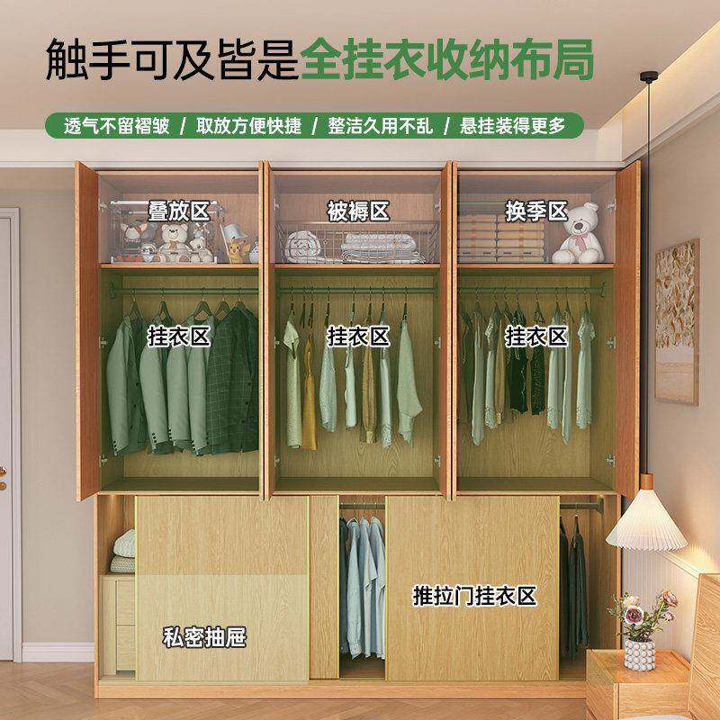 定制拉门橡木衣柜原木风新款分段式平开推拉一体主卧储物衣橱