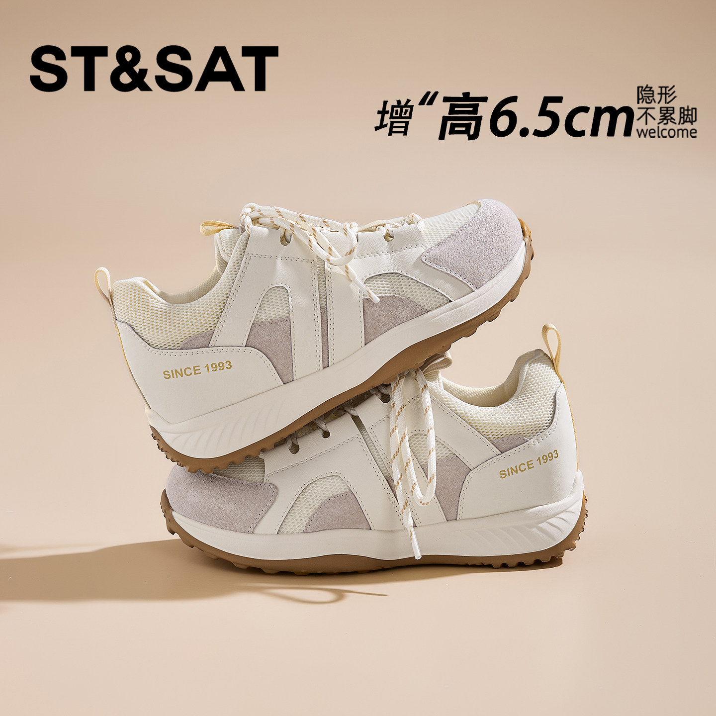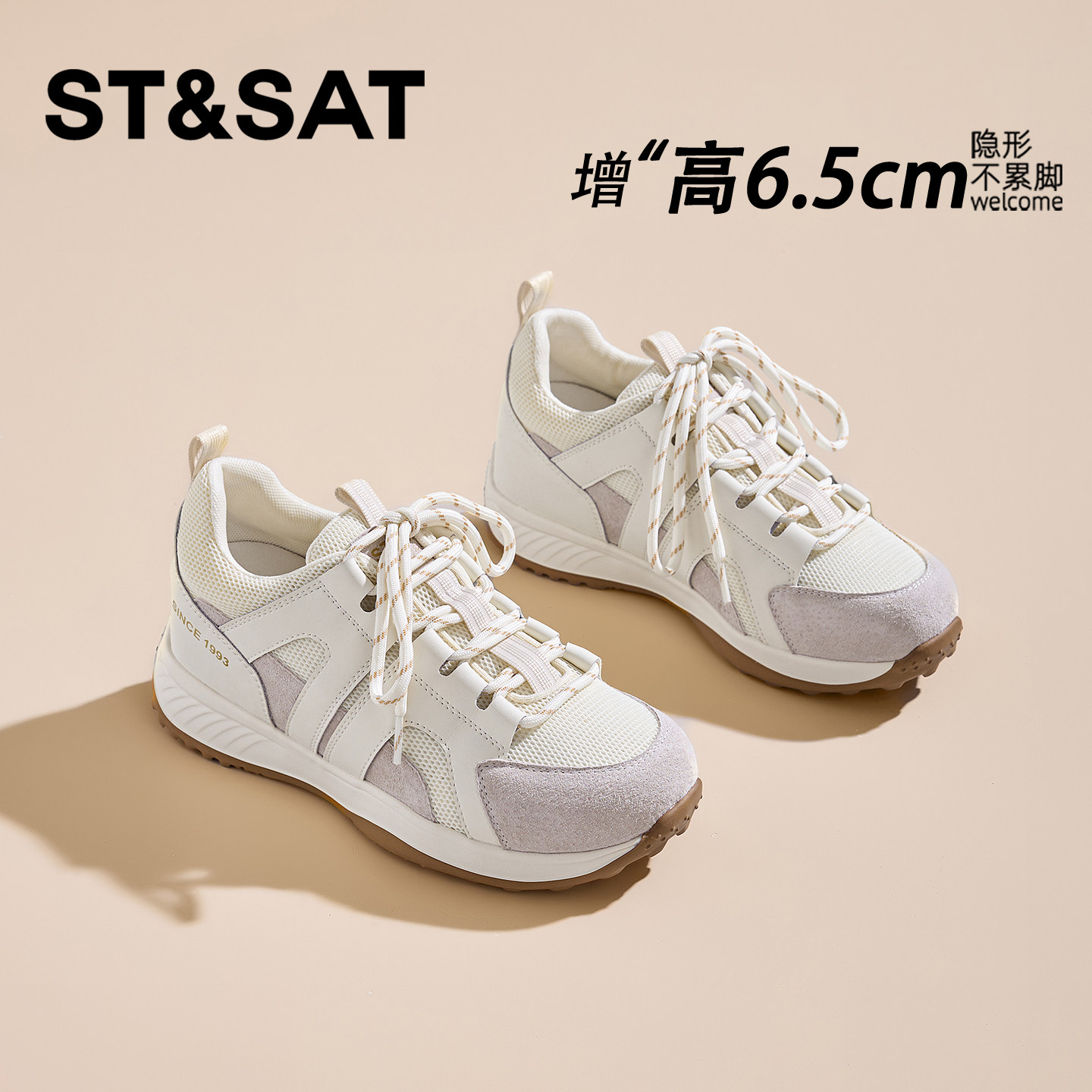 星期六6.5CM网面透气内增高女鞋厚底小个子软底不累脚德训阿甘鞋