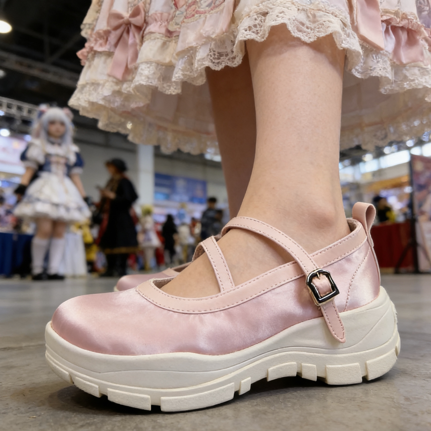 微瑕返厂韩国RF春夏法式香风厚底增高女生交叉绑带玛丽珍休闲女鞋