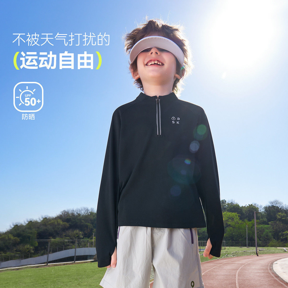 ask儿童卫衣2026春季新款男女童半门襟运动防晒上衣休闲长袖