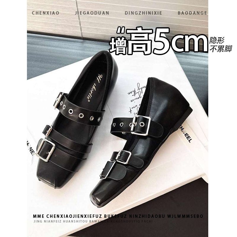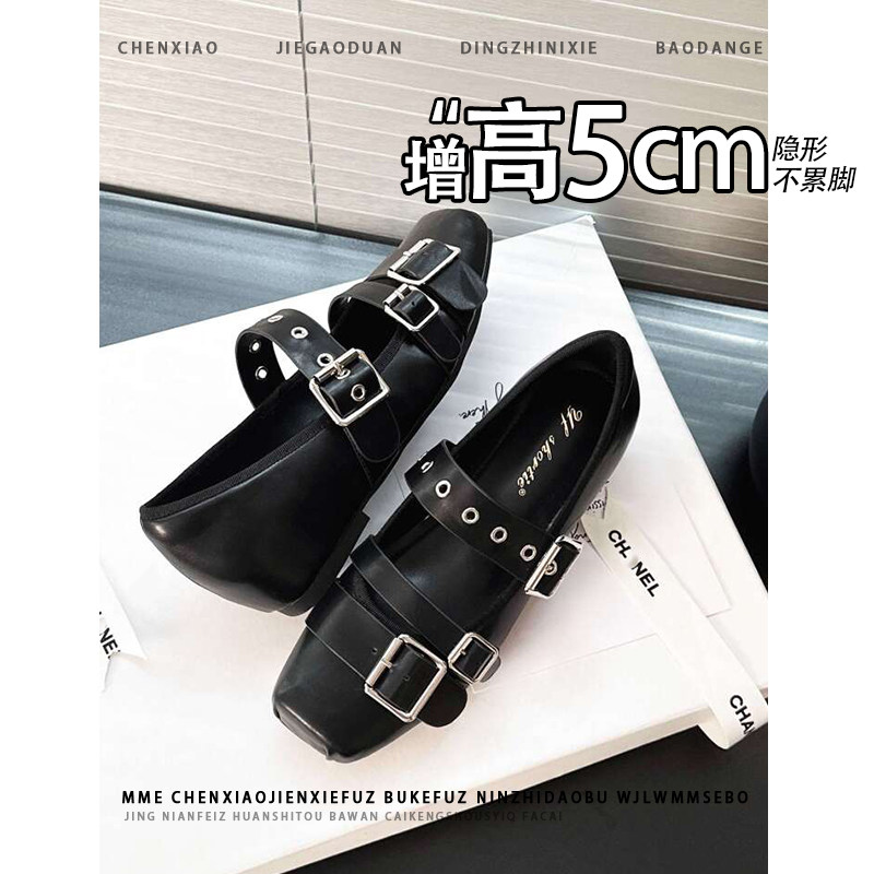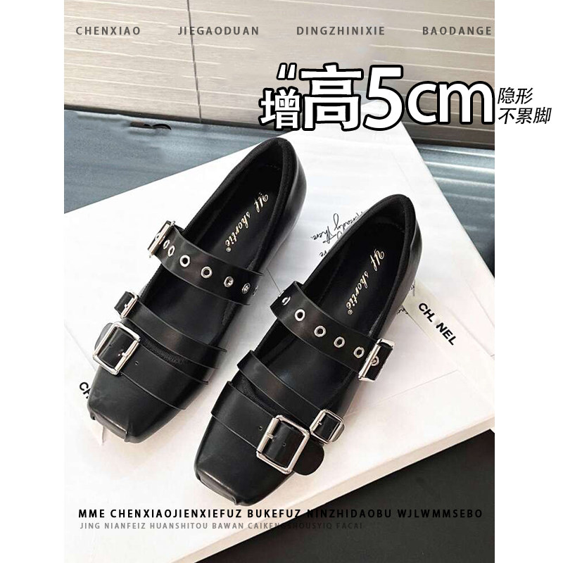 不累脚~小个子内增高5CM玛丽珍鞋2026秋皮带扣浅口温柔芭蕾单鞋女