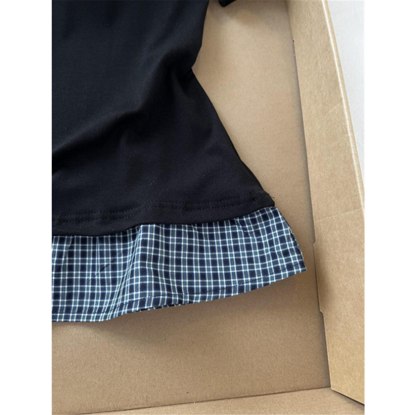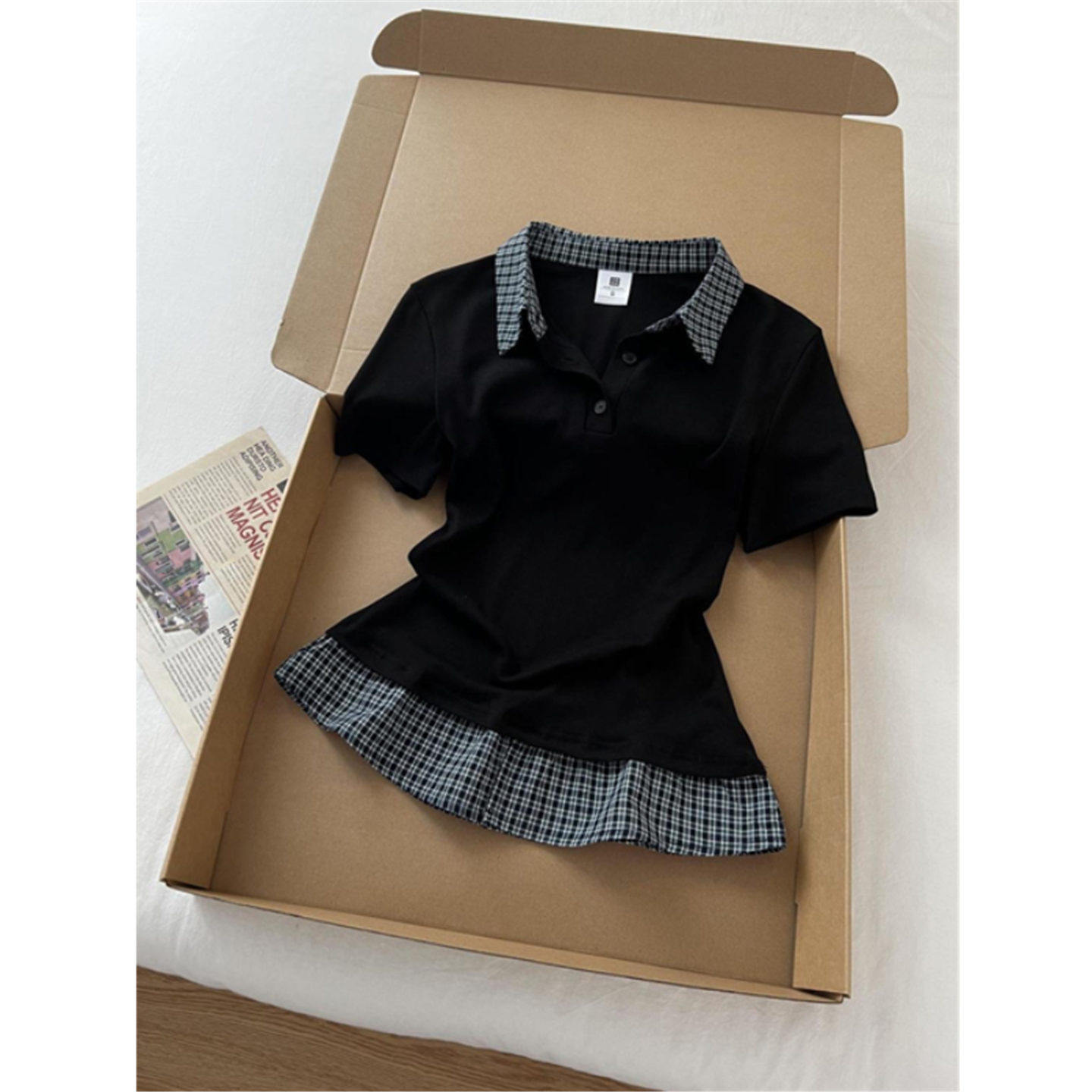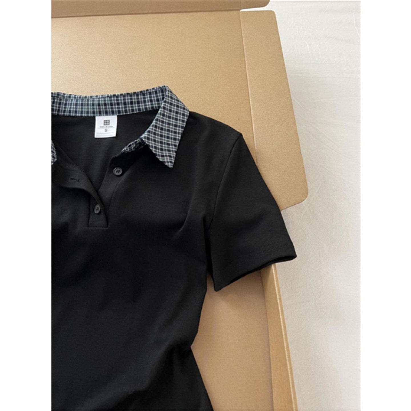 格子拼接假两件polo领短袖t恤女夏季2026新款修身显瘦短款上衣服