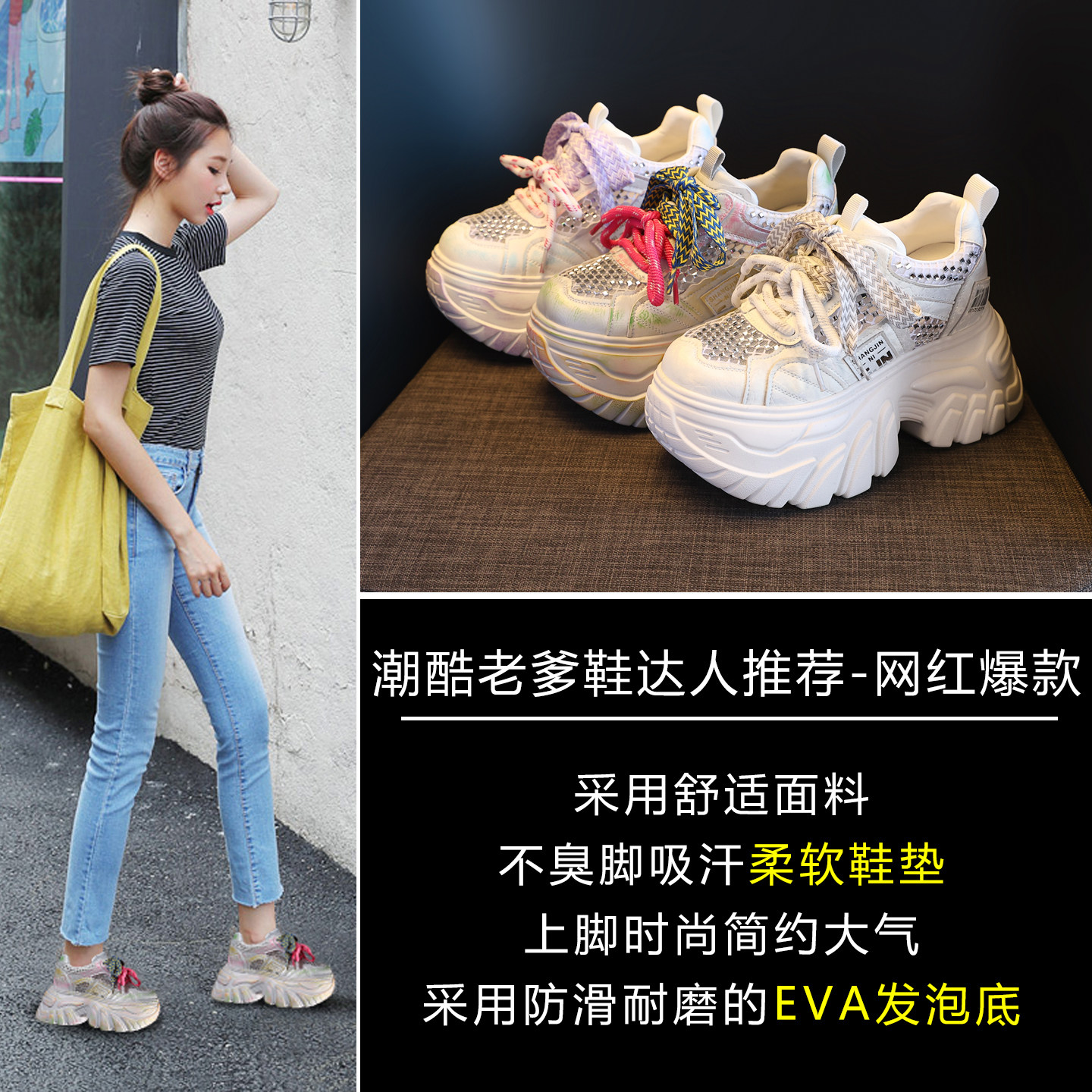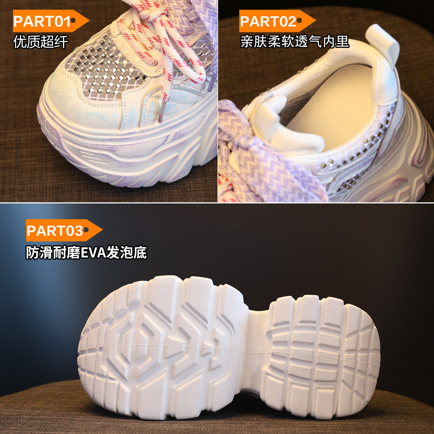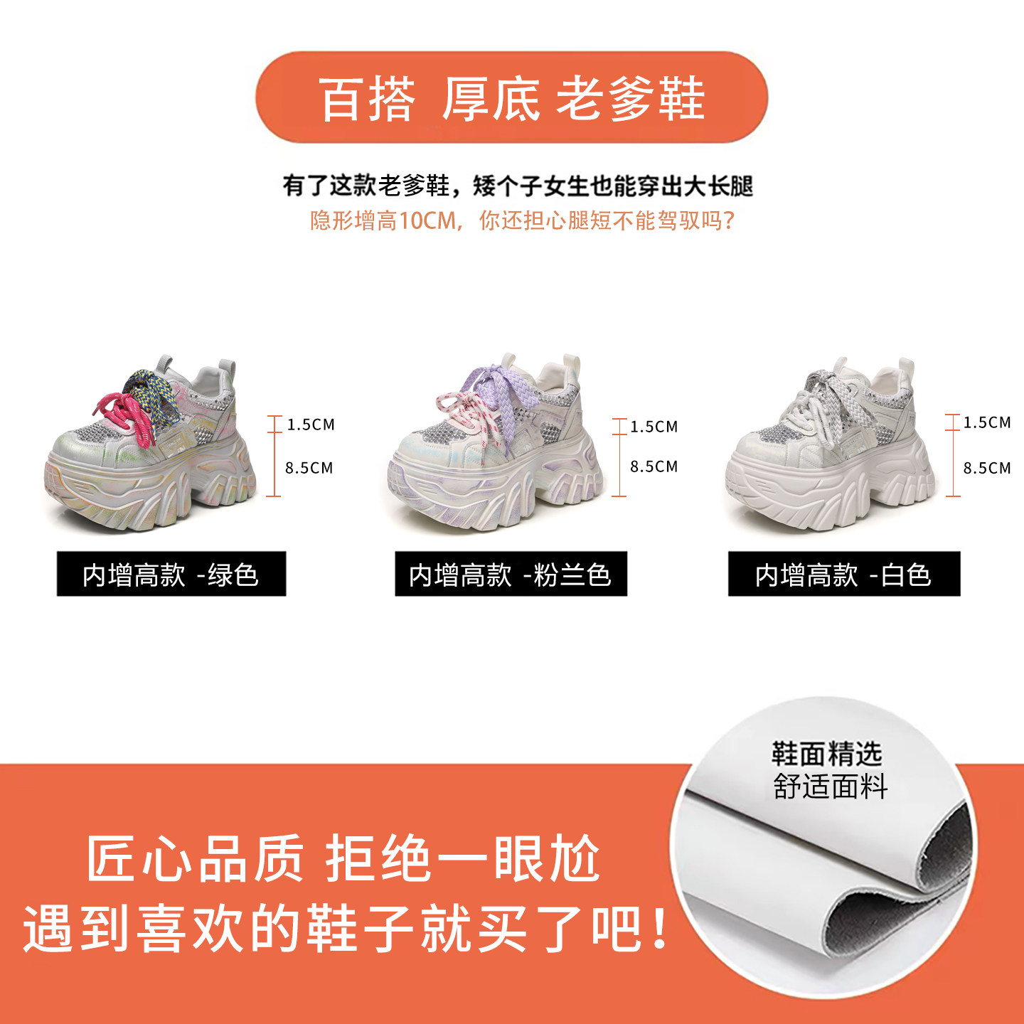 小个子老爹鞋女增高10cm镂空网面2026新款夏季水钻秀气厚底休闲鞋