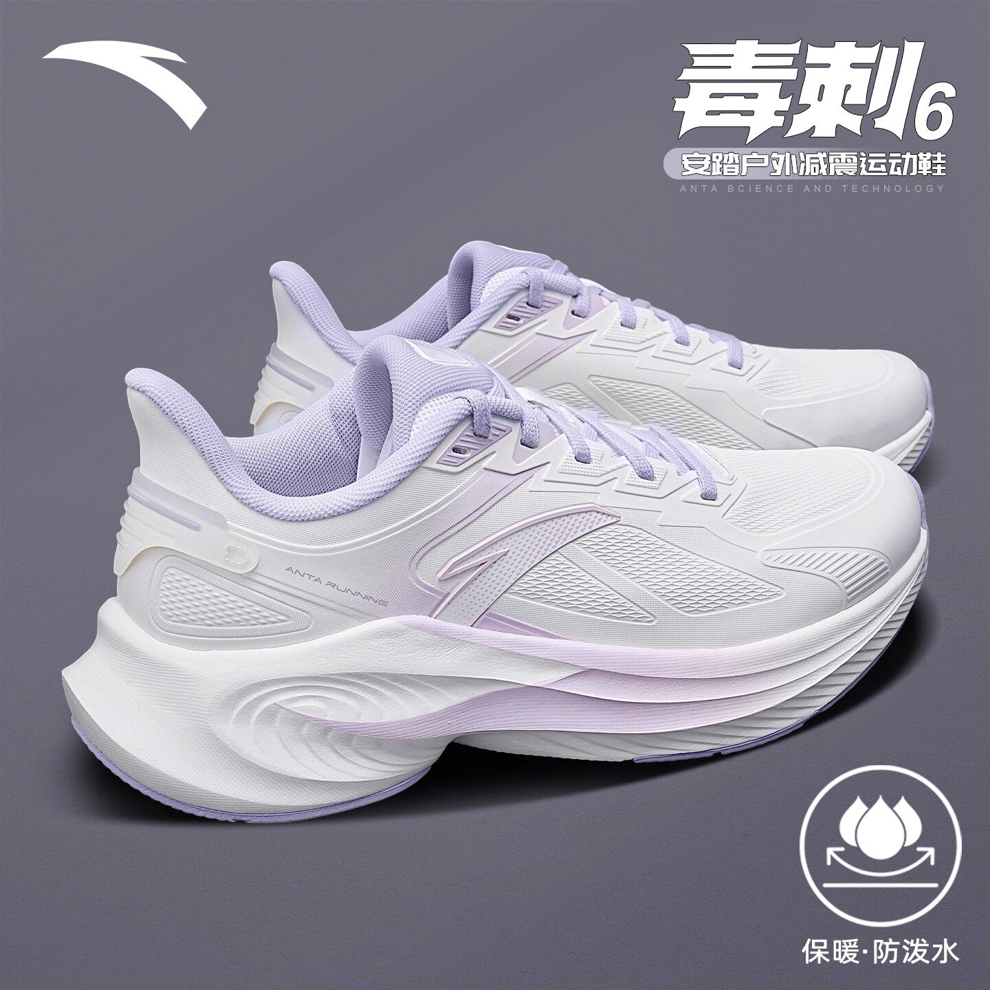 安踏毒刺6跑步鞋女款皮面保暖春季新款官方旗舰店减震运动鞋女鞋