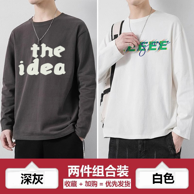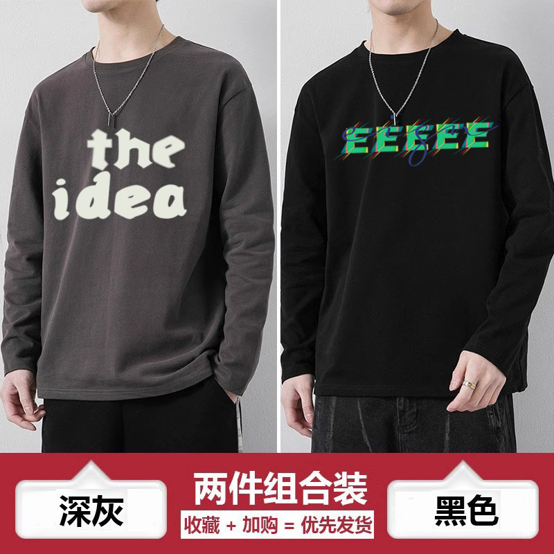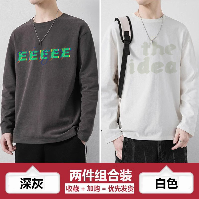 青少年t恤纯棉男生春秋季上衣高中生体恤薄款男孩长袖休闲打底衫