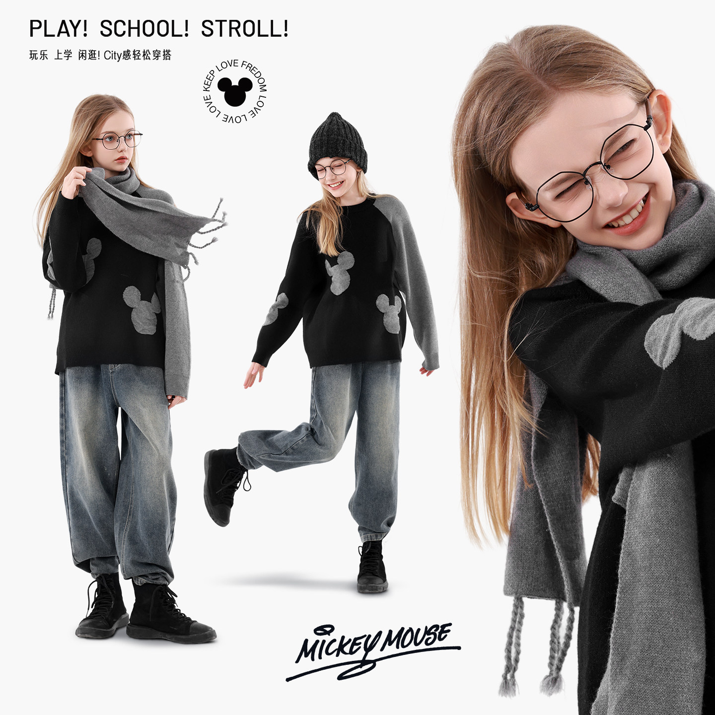 迪士尼女童毛衣25秋冬新款儿童针织衫外套大童上衣青少年女孩童装