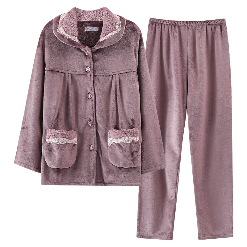 冬季150cm娇小个子加厚中老年妈妈法兰绒睡衣女老人休闲家居服xs