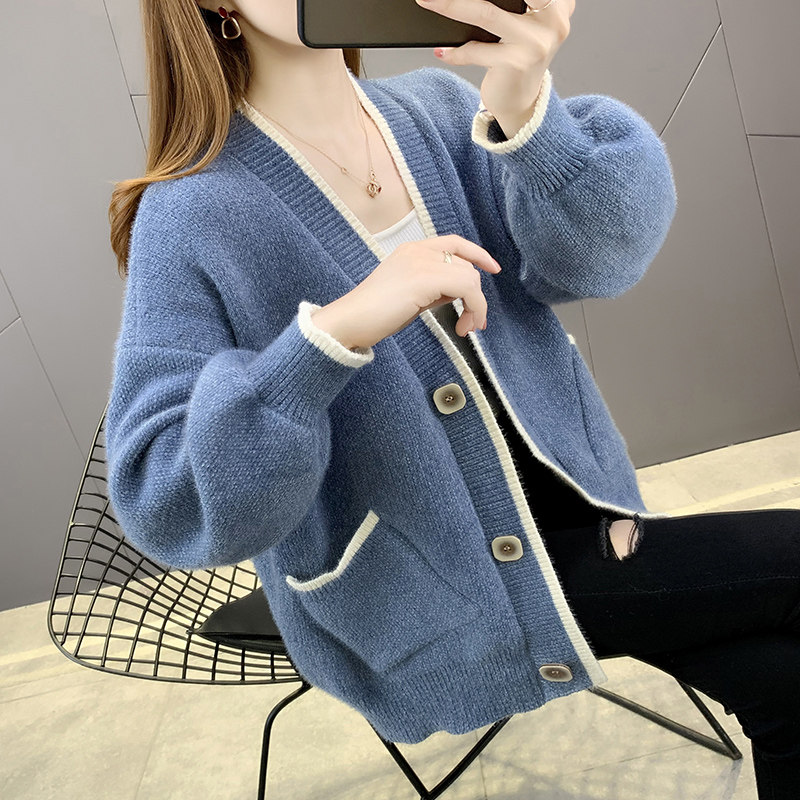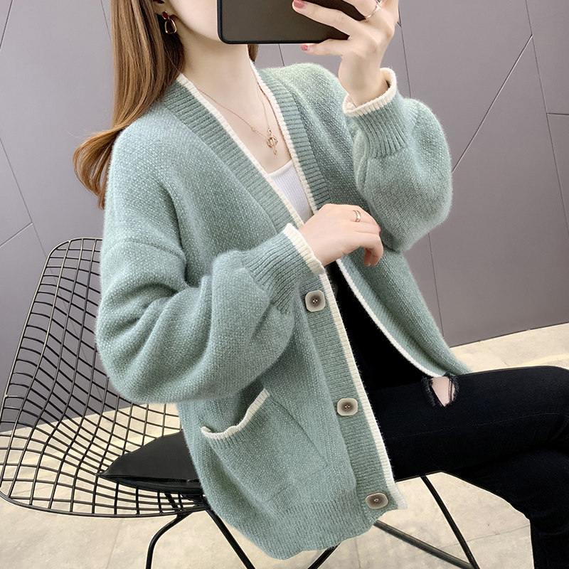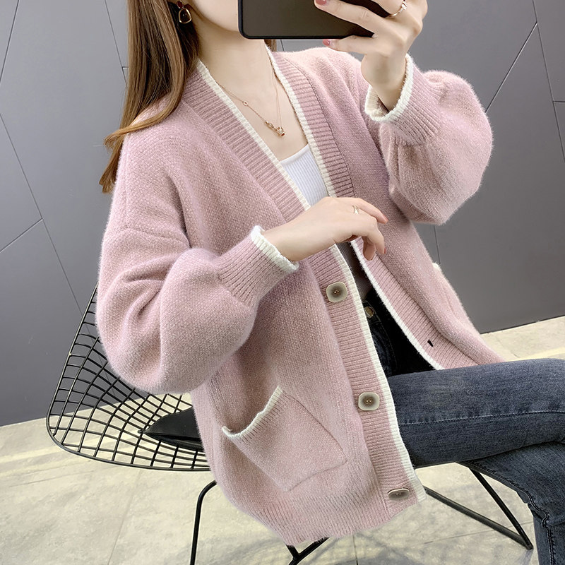 针织开衫春装女款2026年新款上衣仿水貂绒外搭宽松慵懒风毛衣外套