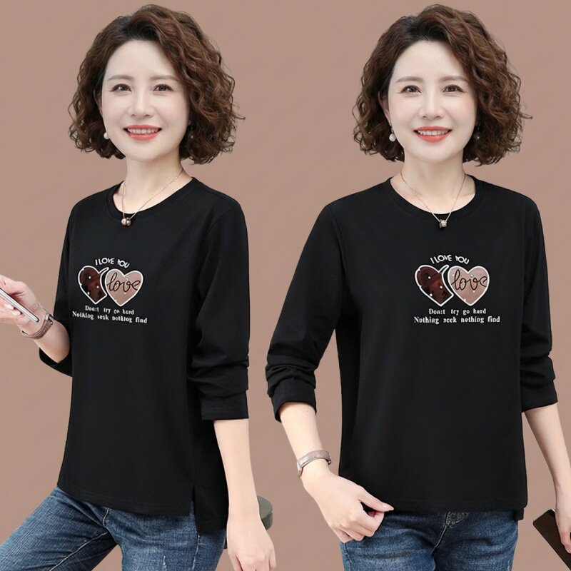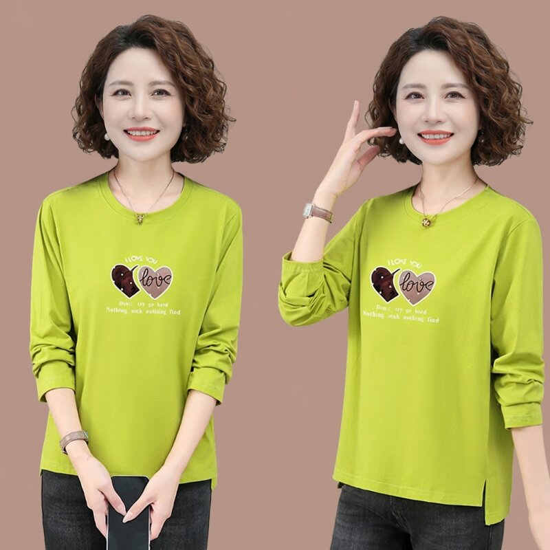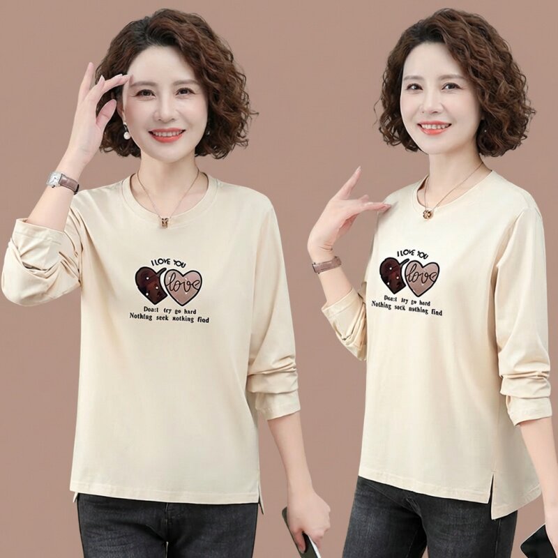 纯棉长袖t恤女中年妈妈圆领打底衫上衣女款春装宽松内搭2026新款