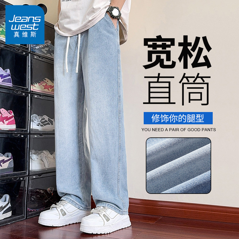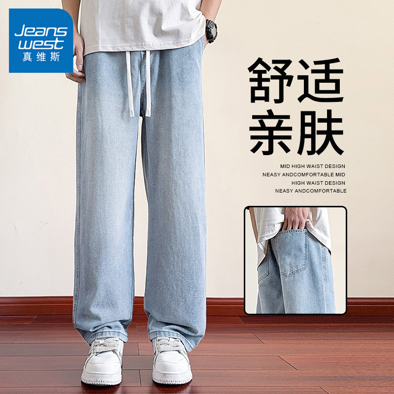 真维斯牛仔裤子男女款夏季潮牌宽松直筒天丝薄款休闲百搭男士长裤