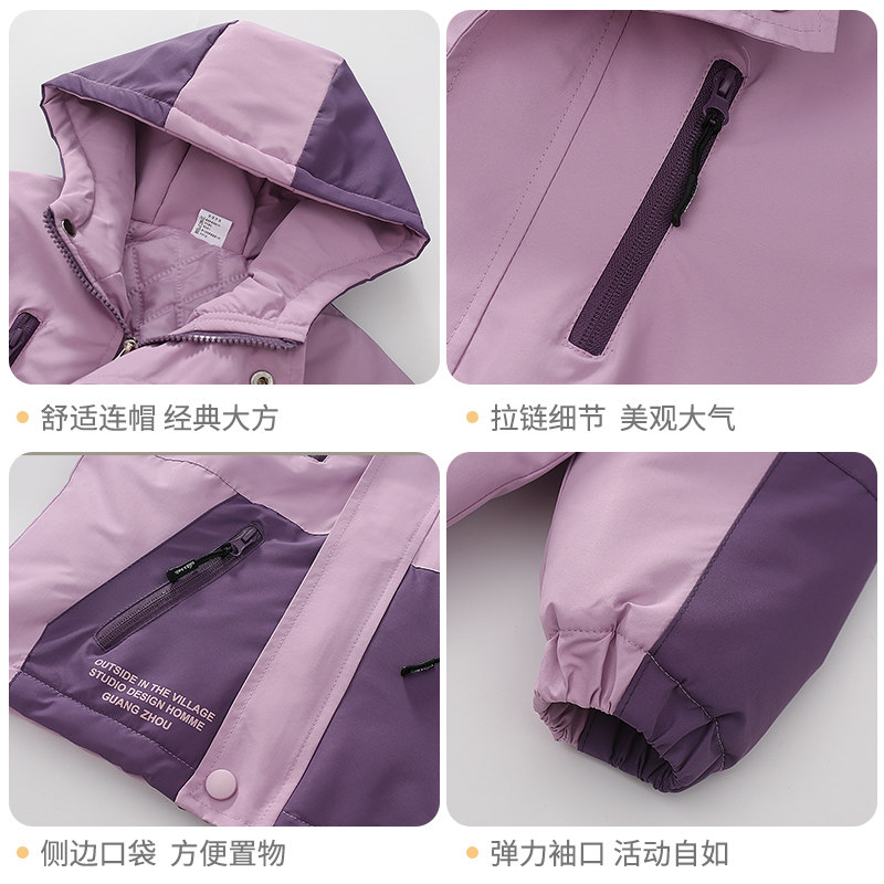 雅鹿女童夹棉棉服2025新款防水派克服初中生女孩加绒冲锋衣厚外套