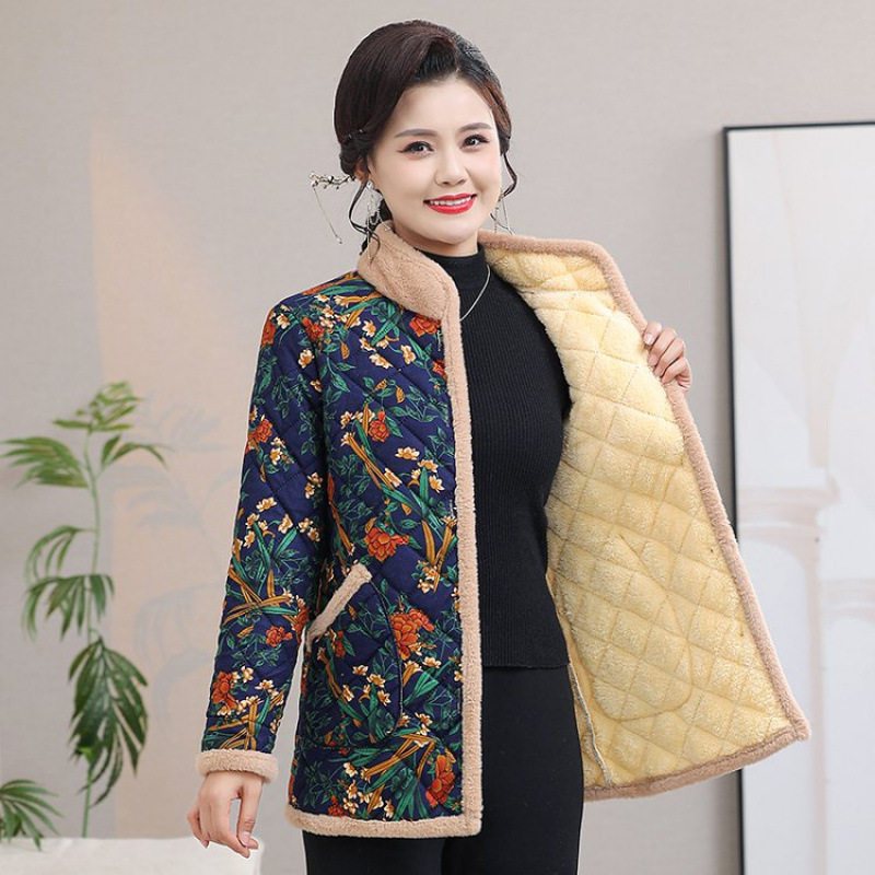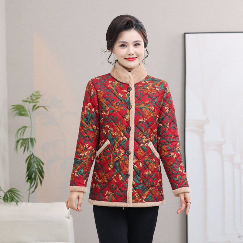 睡衣女款冬季加绒加厚碎花棉袄上衣中老年妈妈棉服保暖家居服单件