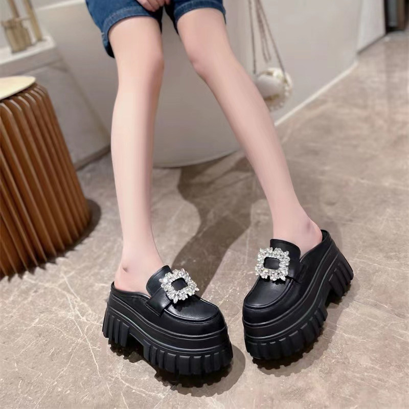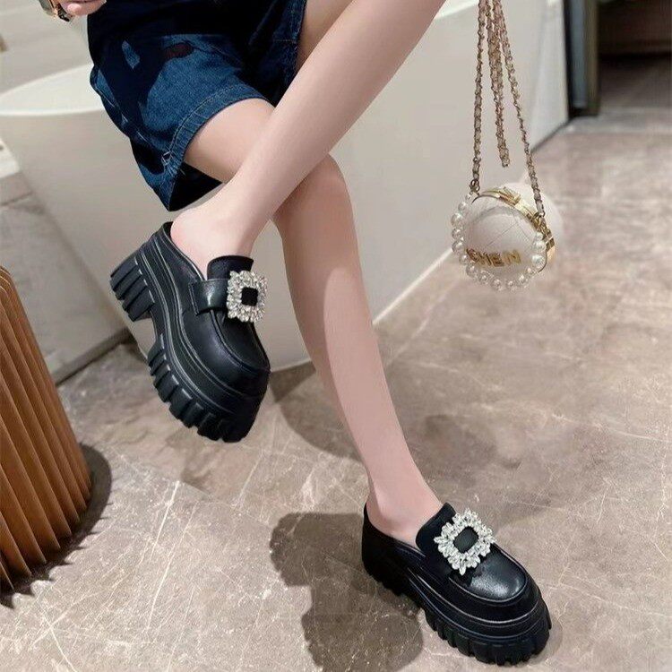 包头半拖鞋女外穿春夏季无后跟内增高跟厚底乐福鞋穆勒凉拖女鞋子