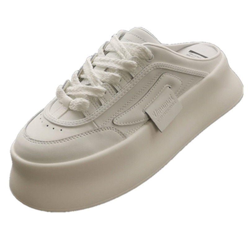 2025年春夏新款真皮厚底松糕底柔软轻便透气百搭包头半拖鞋女鞋潮