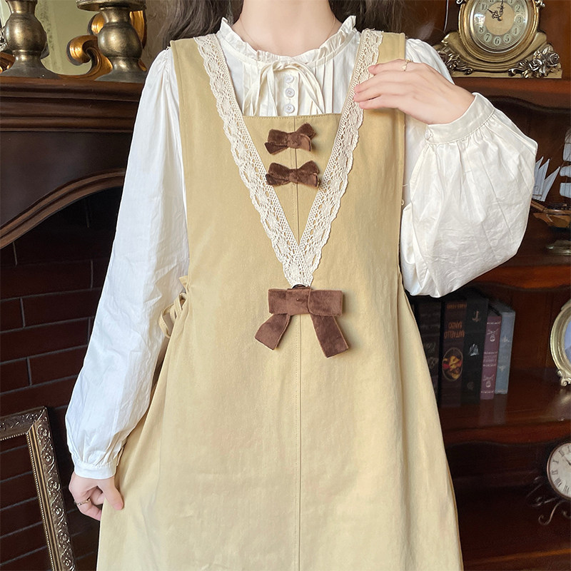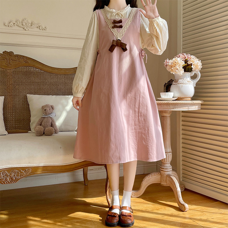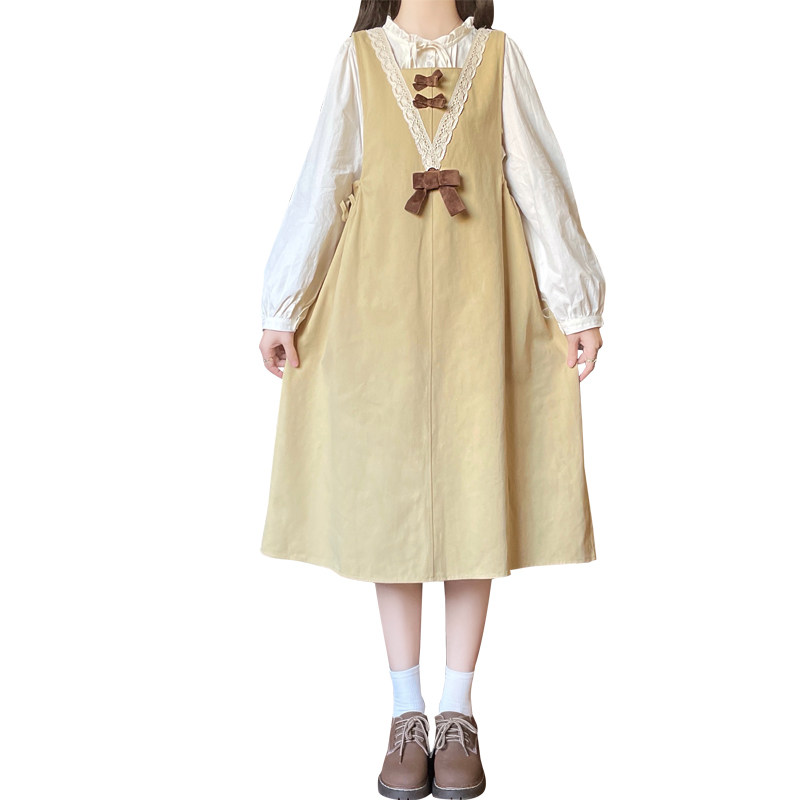初中女生甜美可爱连衣裙15韩版16岁高中学生春季长袖衬衫套装裙子