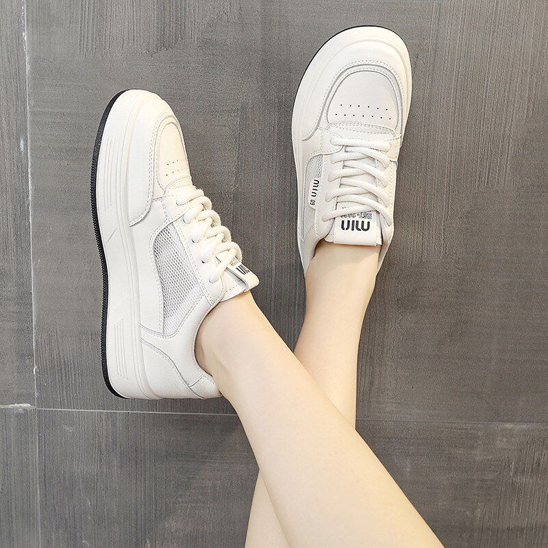 新品踩屎感真皮小白鞋女款2026新款春季网面透气板V鞋显脚小运动