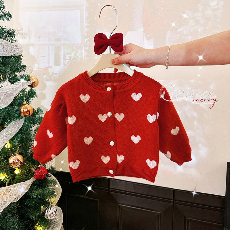 女童tutu裙套装秋冬季新年红色兔兔裙圣诞毛衣儿童针织外套半身裙