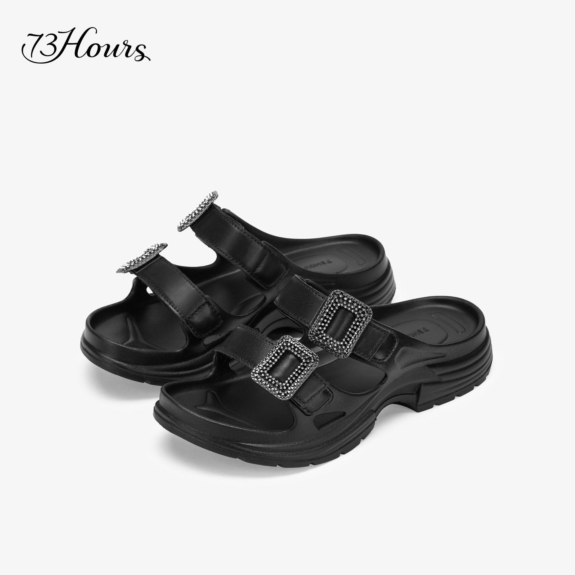 73hours女鞋星光乐园2025夏季新款厚底增高黑色外穿拖鞋勃肯鞋女