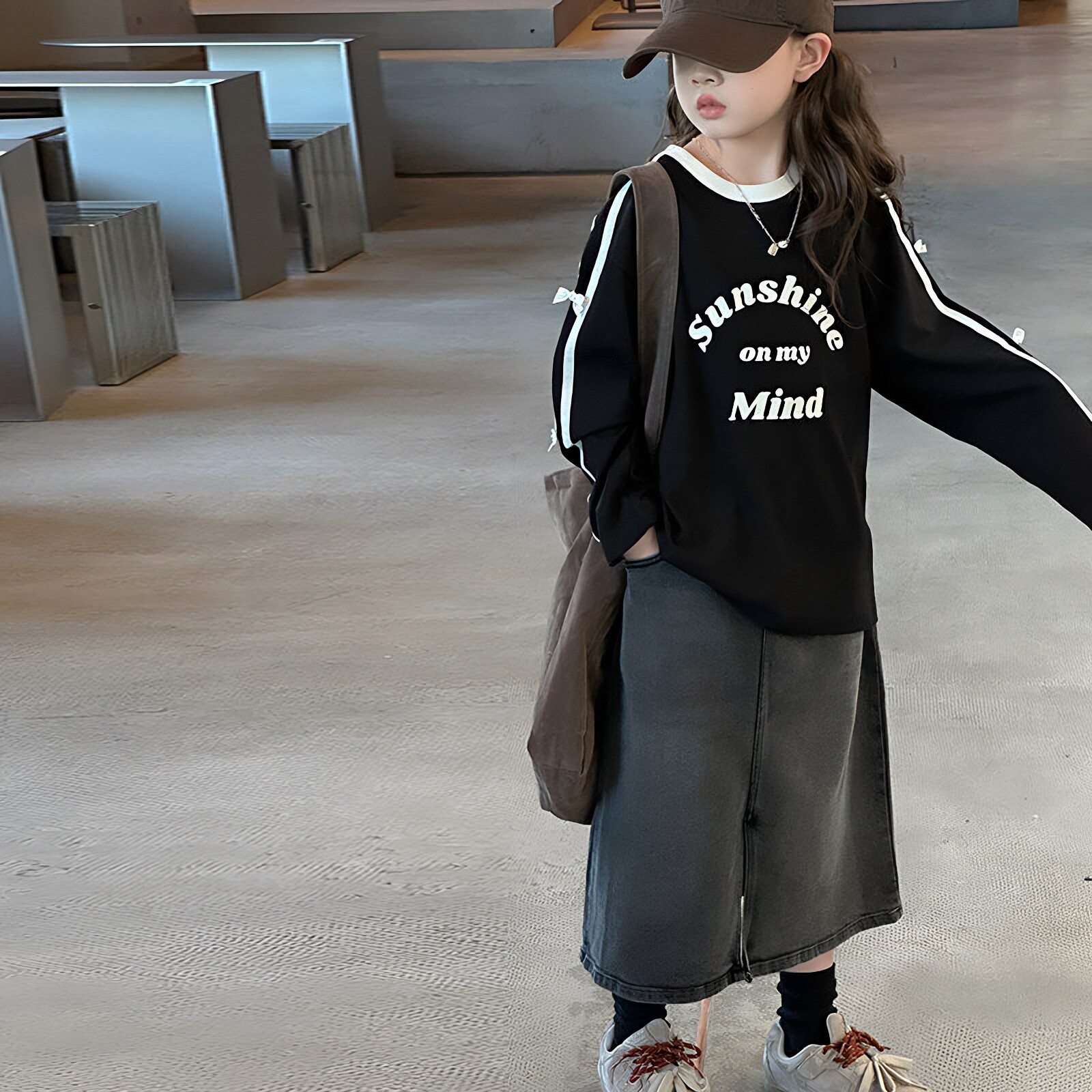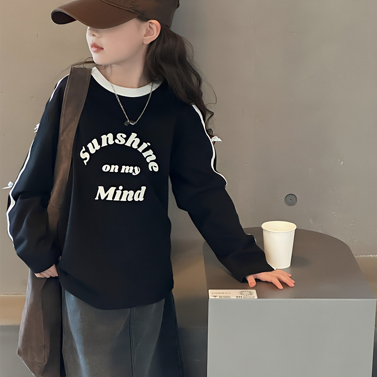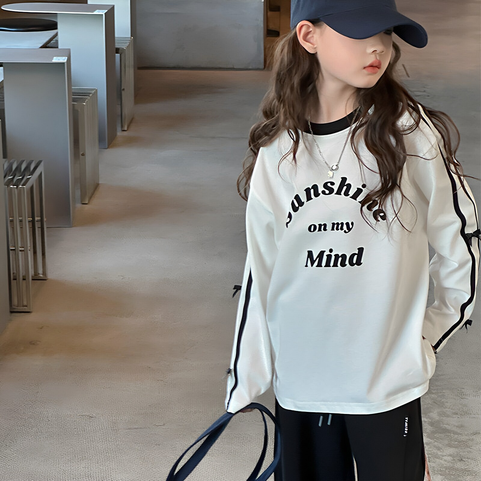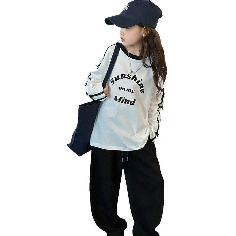 女童休闲范字母印花长袖T恤纯棉打底衫春款卫衣大童洋气宽松上衣