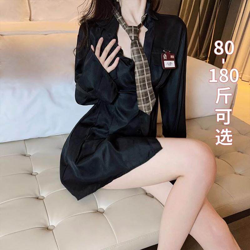 胖MM性感睡裙女春秋款jk制服纯欲衬衫连衣裙2024新款趣味大码睡衣