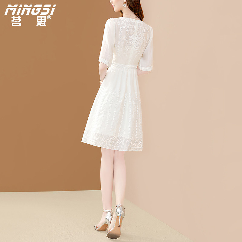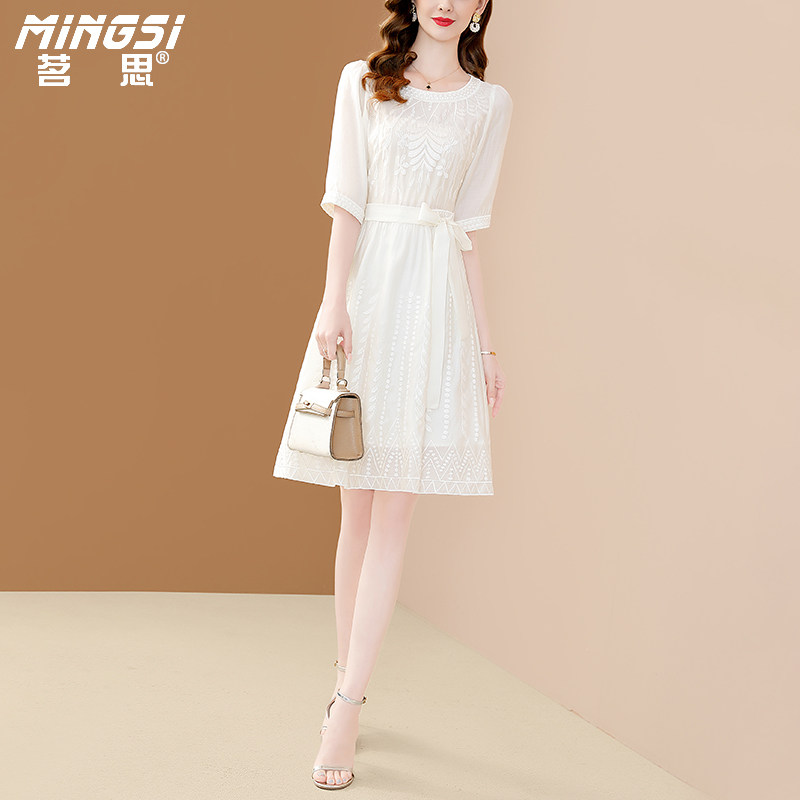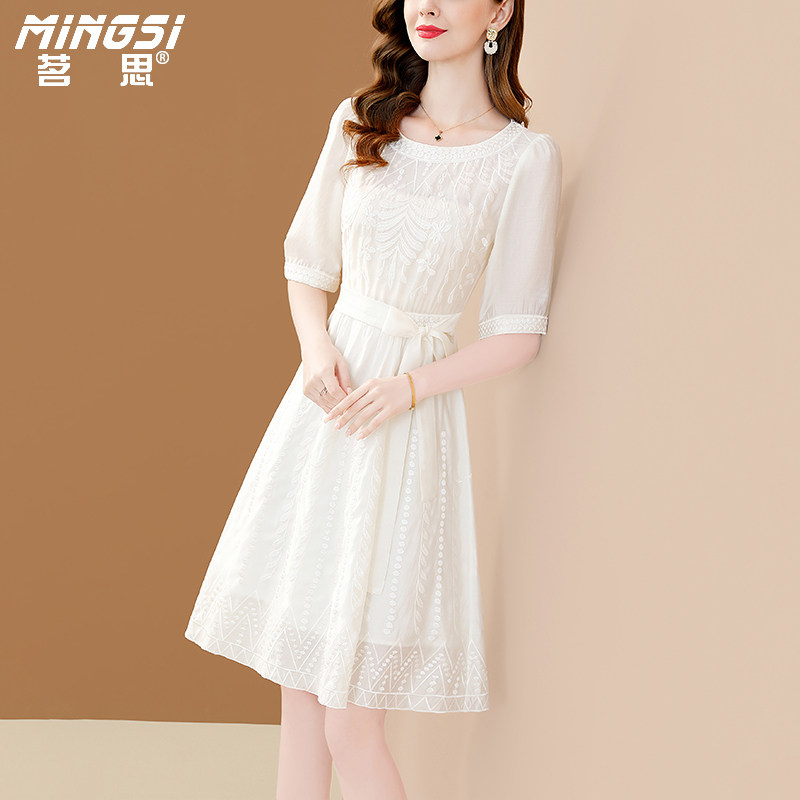 茗思高档精致白色连衣裙女2026新款夏季洋气小个子法式天丝中长裙