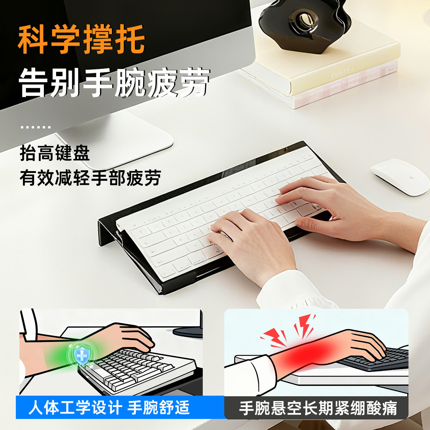键盘托架增高支架亚克力悬浮架通用办公桌台式电脑倾斜托盘桌面机械键盘垫工位打字神器配件腕垫拖架防尘罩