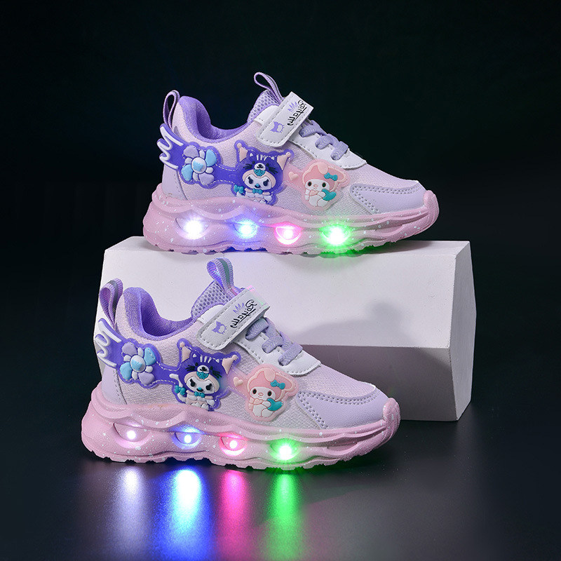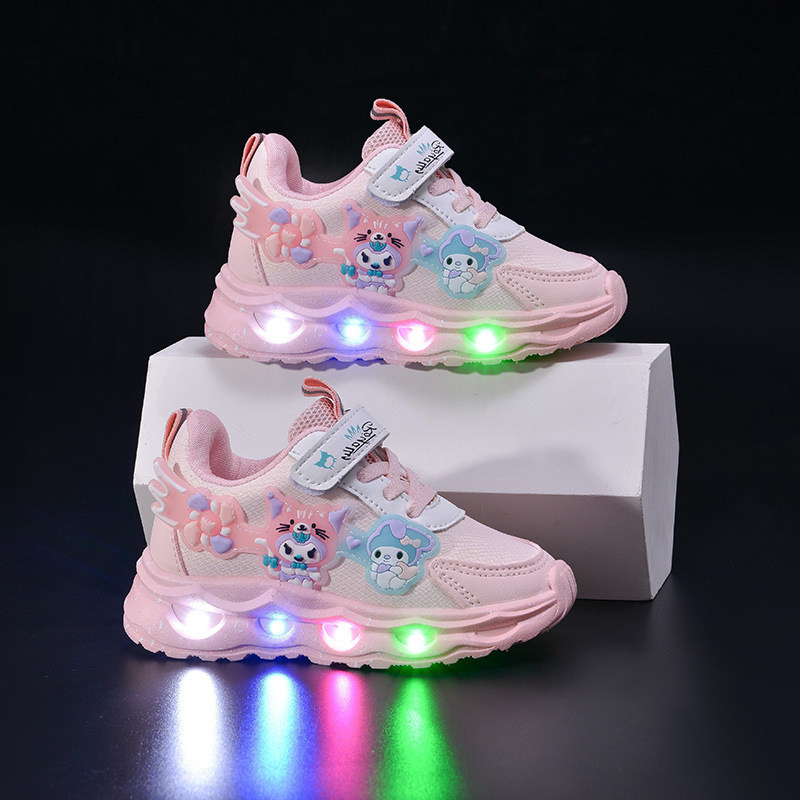 库洛米女童运动鞋2025新款轻便跑步4软底5发光亮灯1岁宝宝学步鞋3