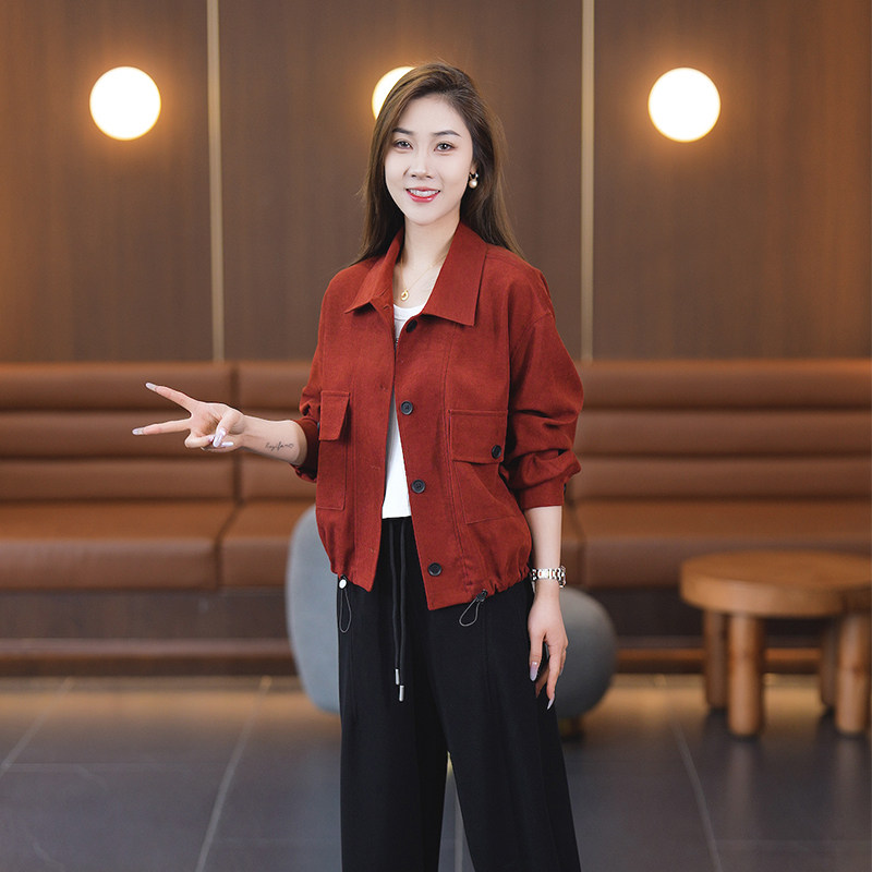 短款外套春装女款2025年新款宽松百搭休闲长袖红色夹克上衣春秋季