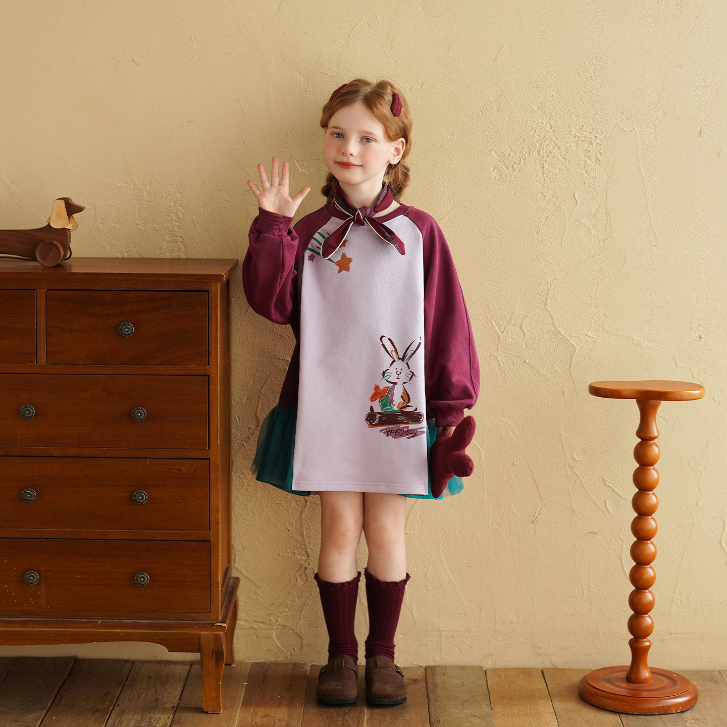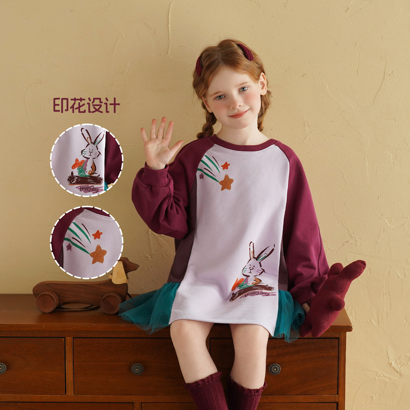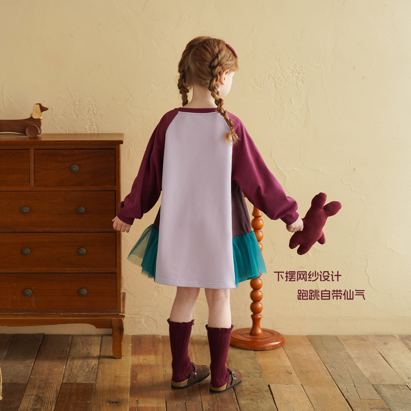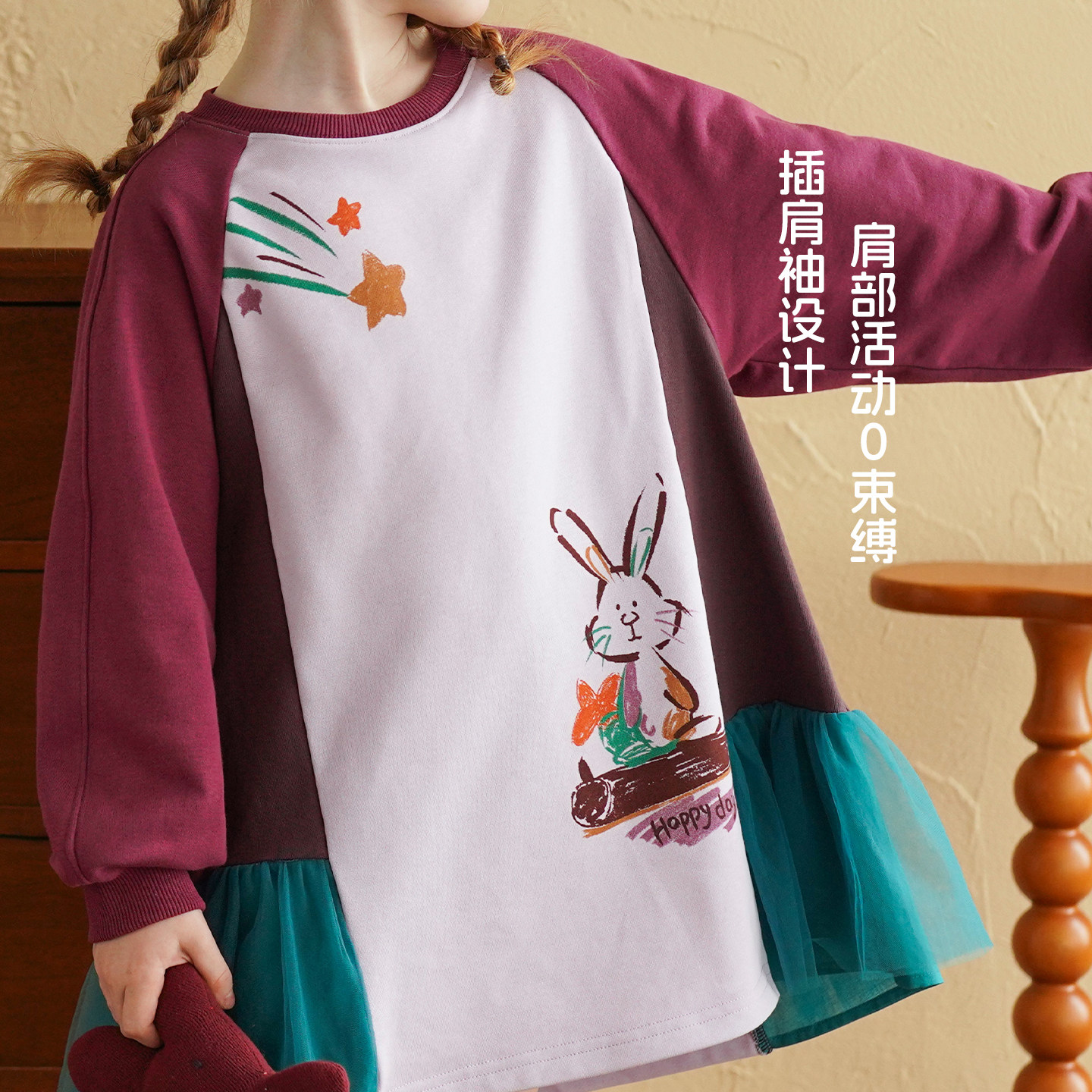 砚台家女童卫衣裙子公主2026春季新款小女孩长袖洋气拼接连衣裙子