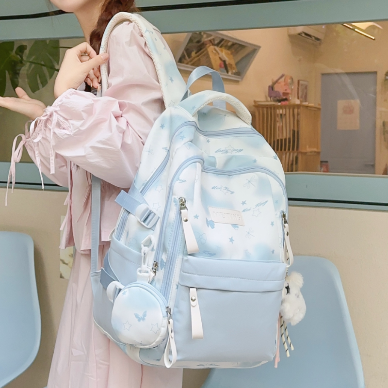 书包初中女生蓝色ins风高中生高颜值2025新款女大容量双肩包肩包