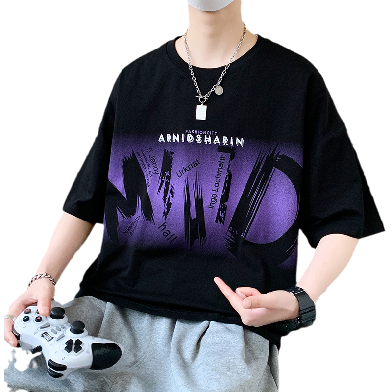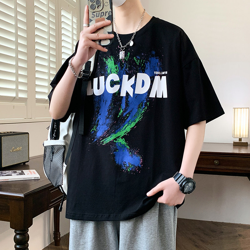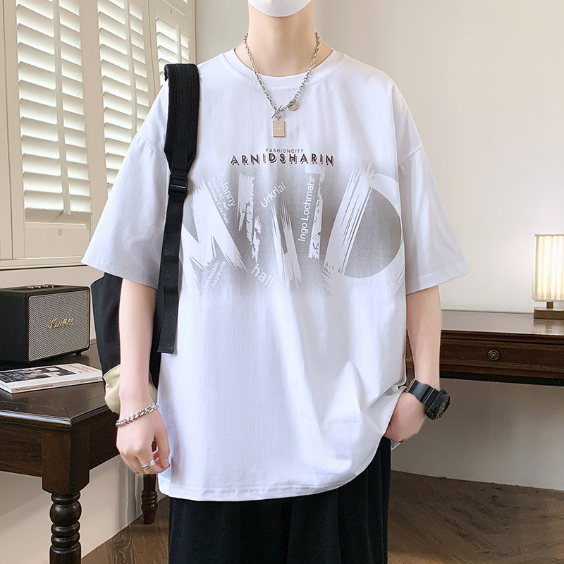 夏季新款短袖t恤男孩初中学生纯棉上衣青少年12-15岁大童宽松男装