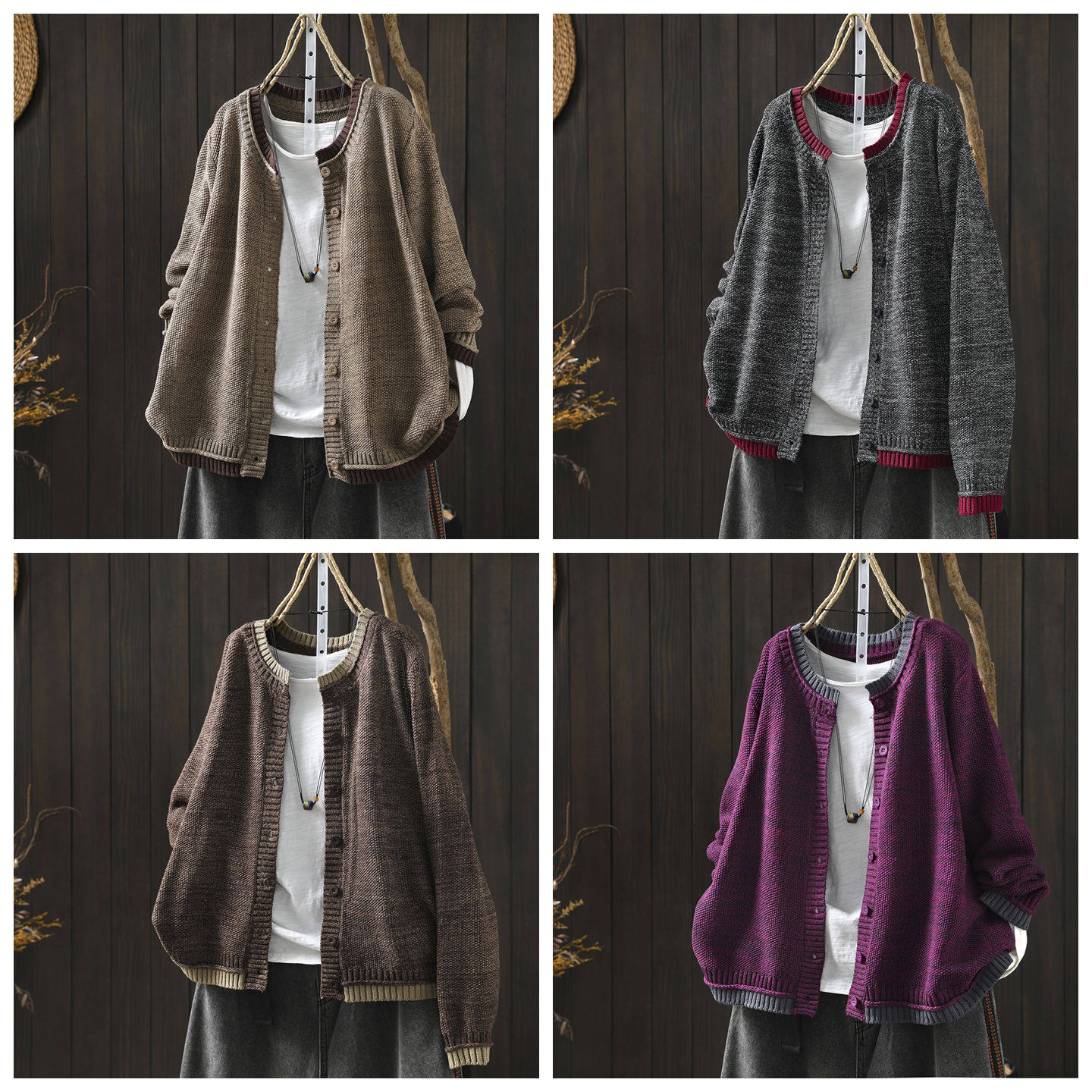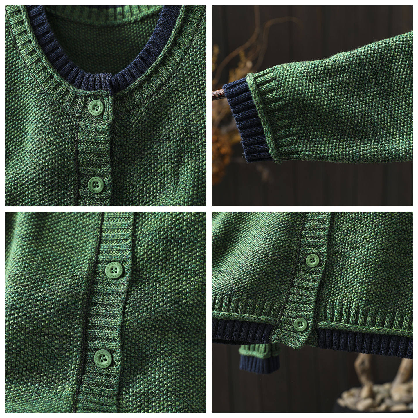 针织衫女款上衣春季2026新款绿色棉线复古宽松外穿设计感毛衣开衫