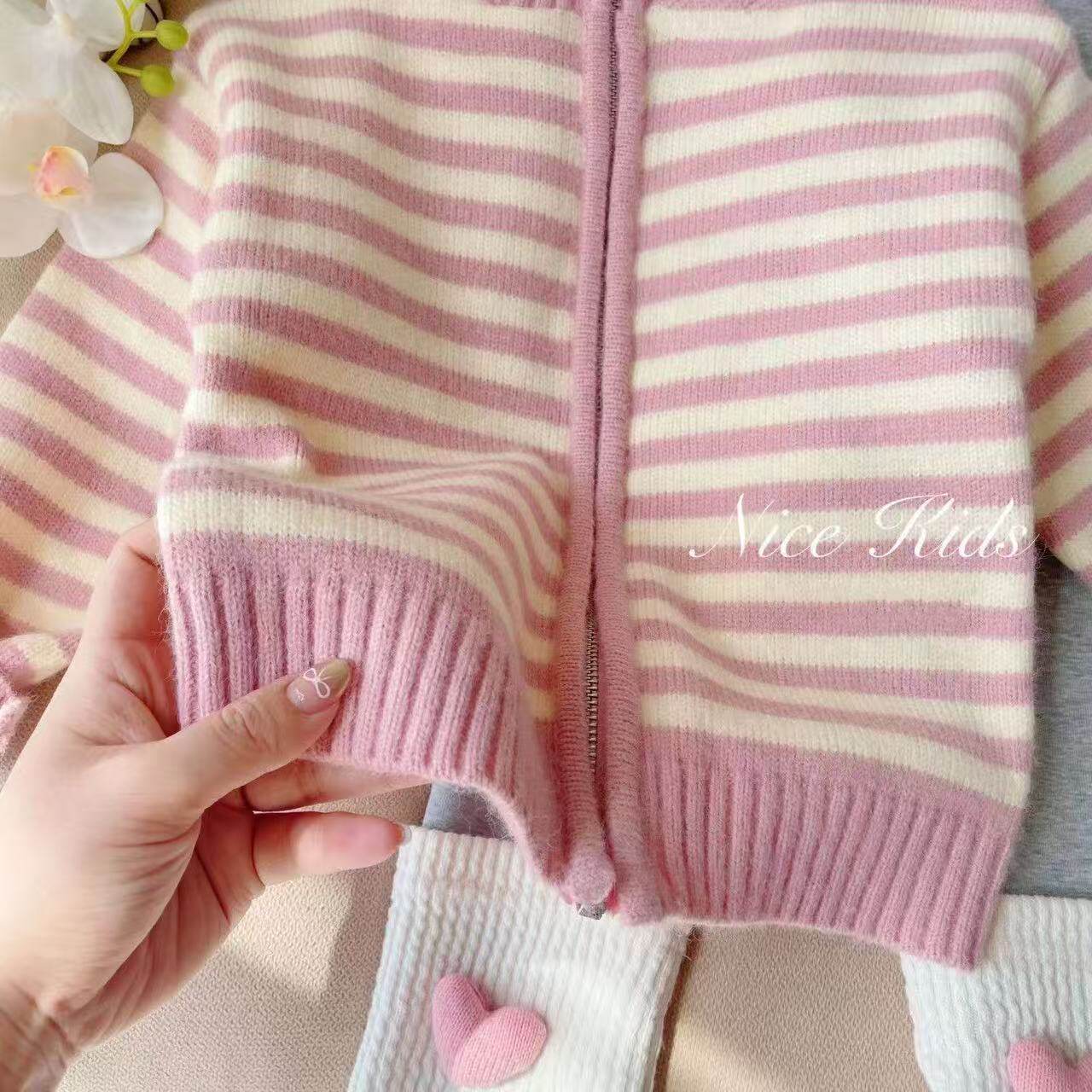 女童毛衣针织开衫2026新款拉链开衫条纹针织毛衣外套上衣中小童