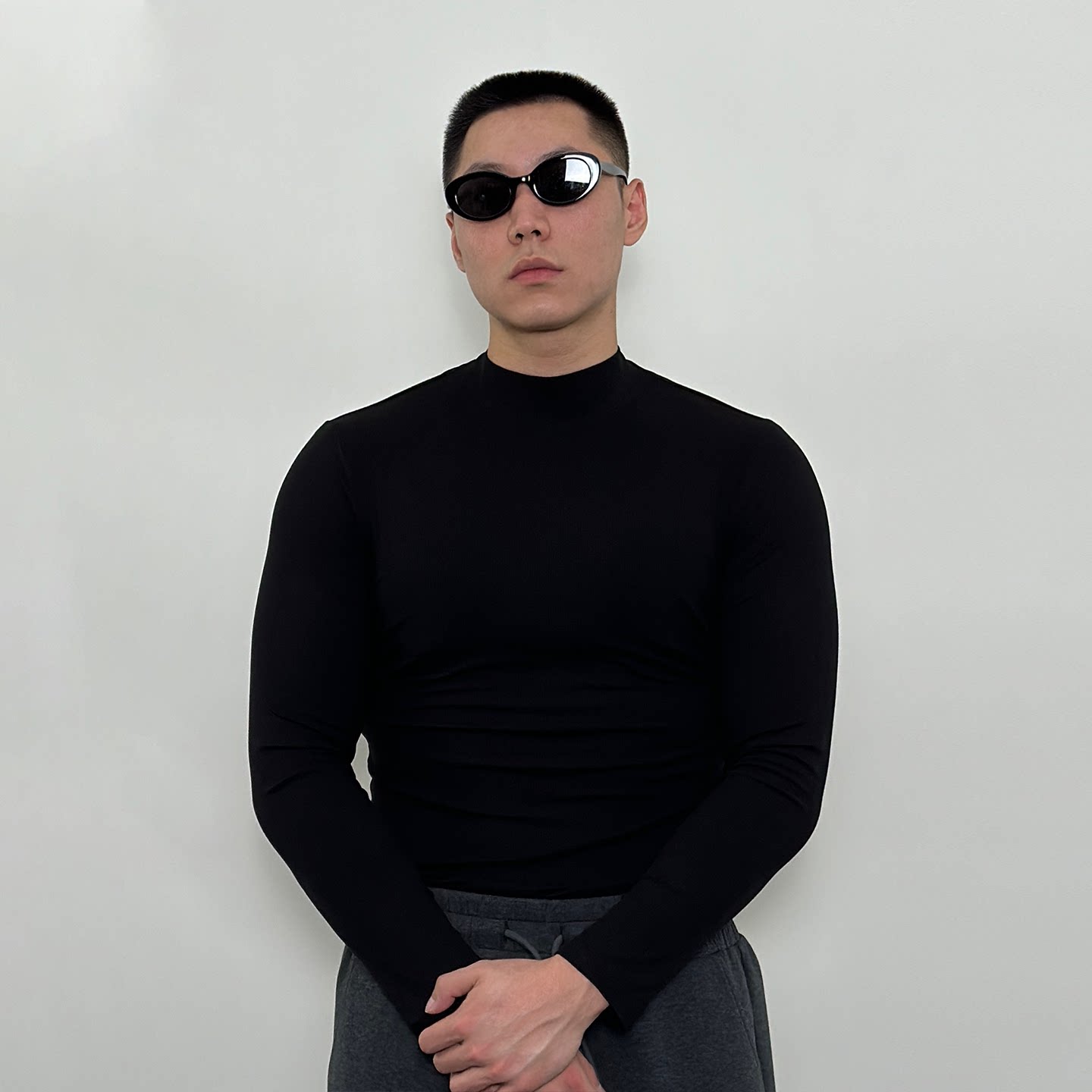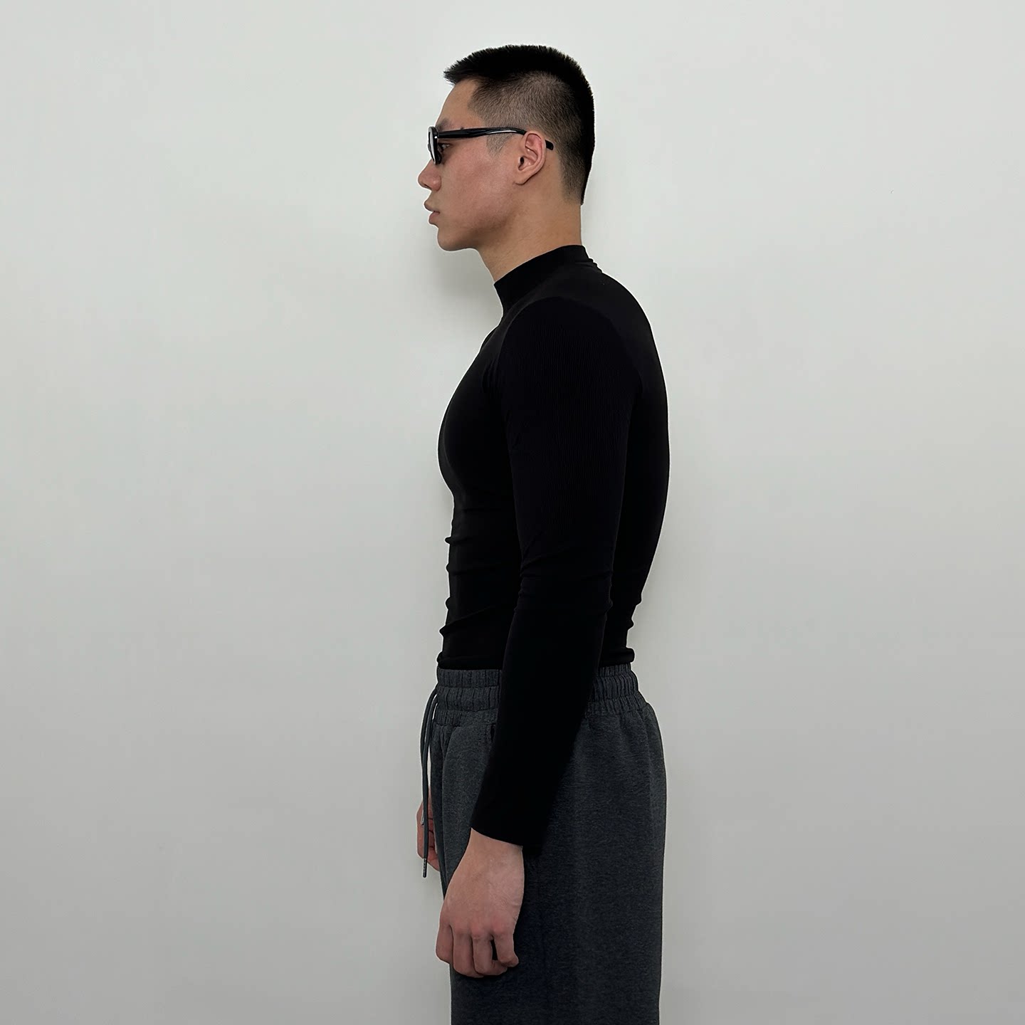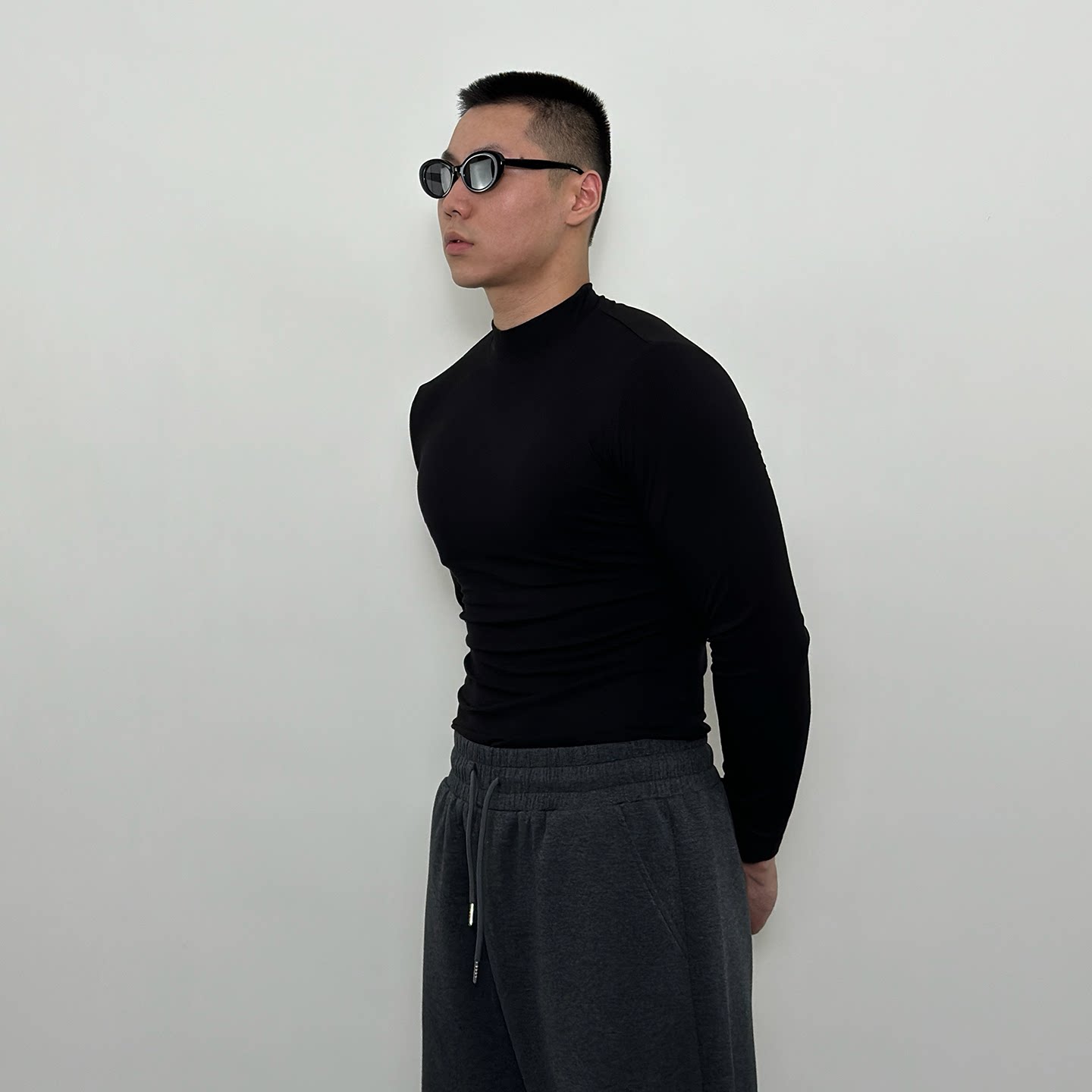 Roast lucky半高领弹力修身打底衫长袖男款纯色健身运动内搭T恤