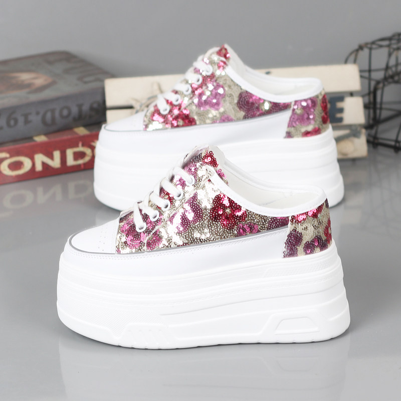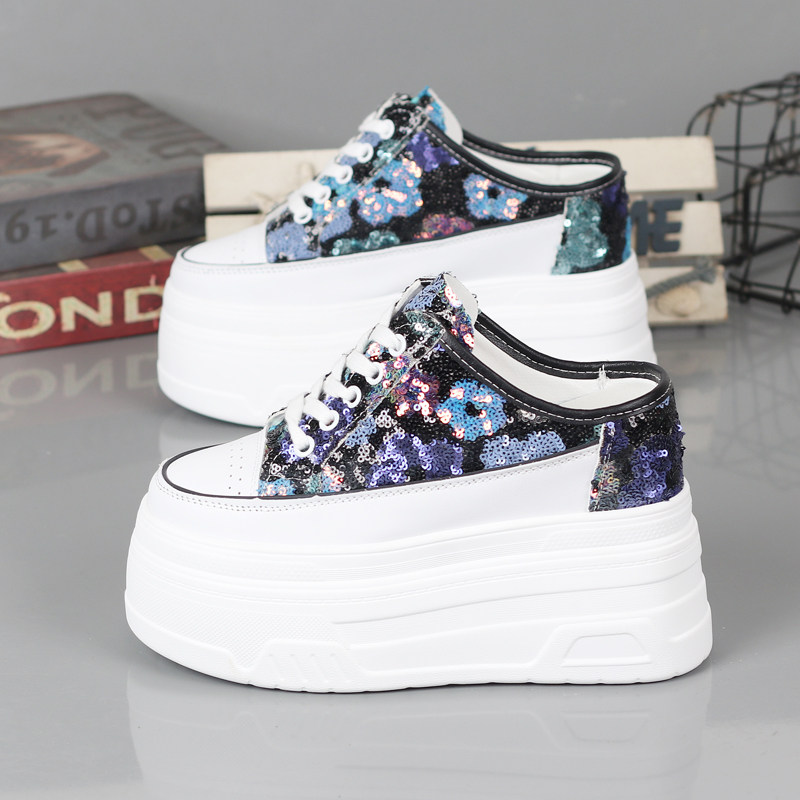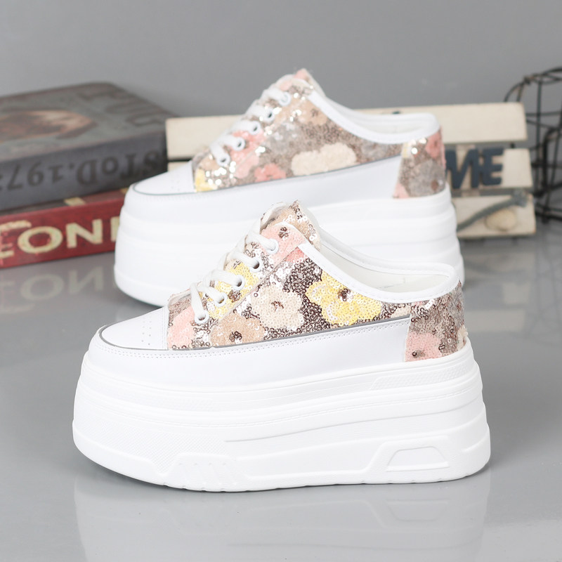 2026春夏小白鞋女厚底内增高10-12CM小个子无后跟懒人鞋半拖鞋女