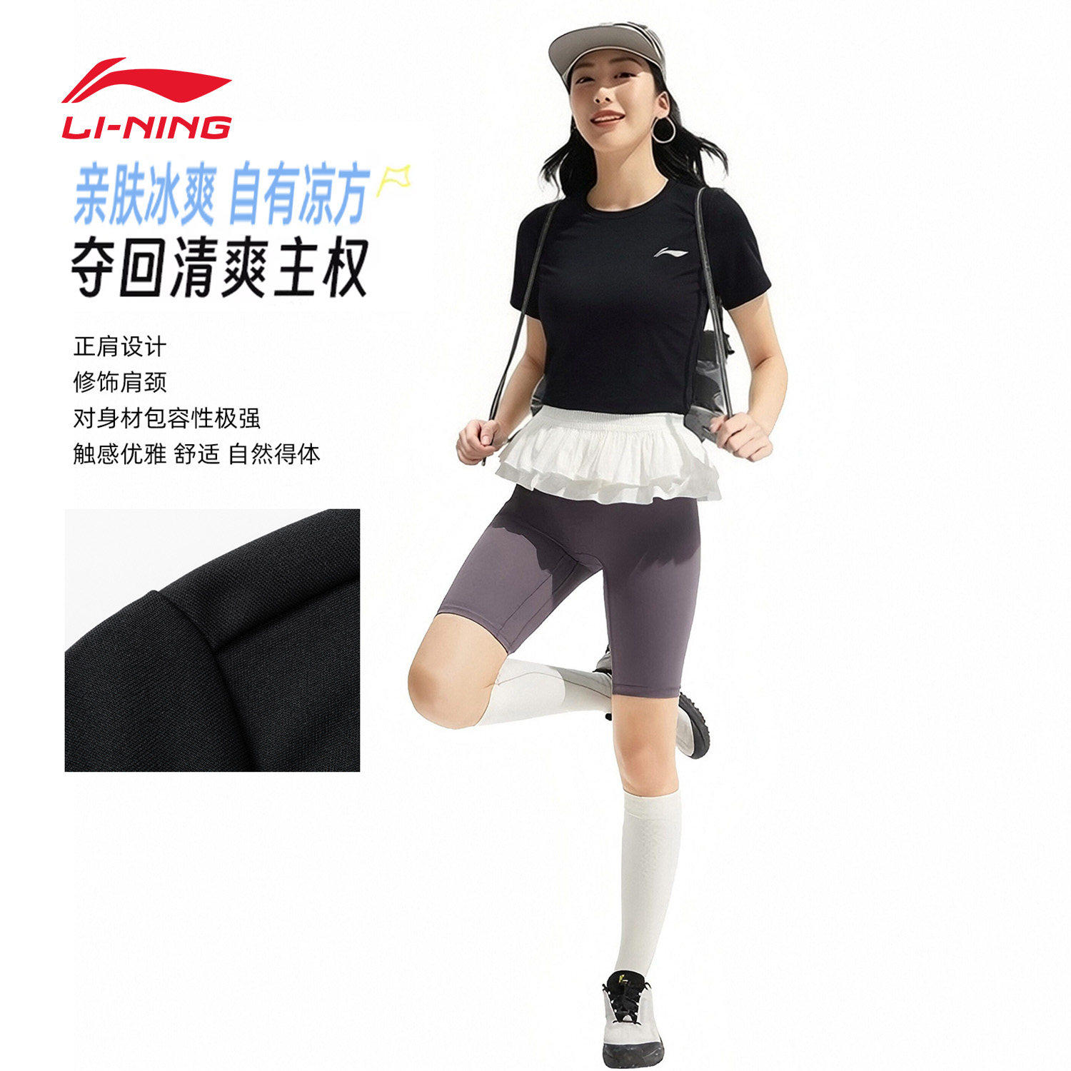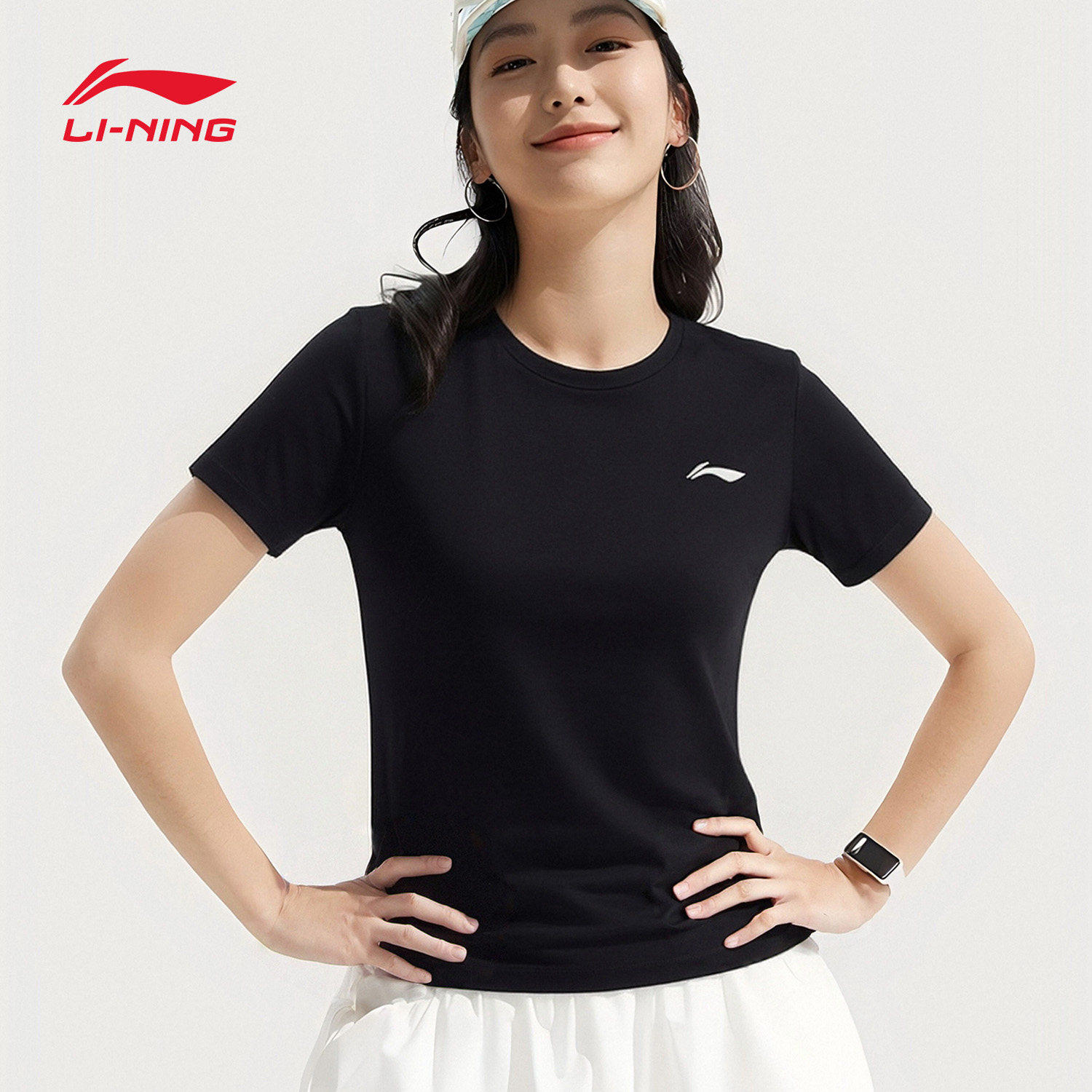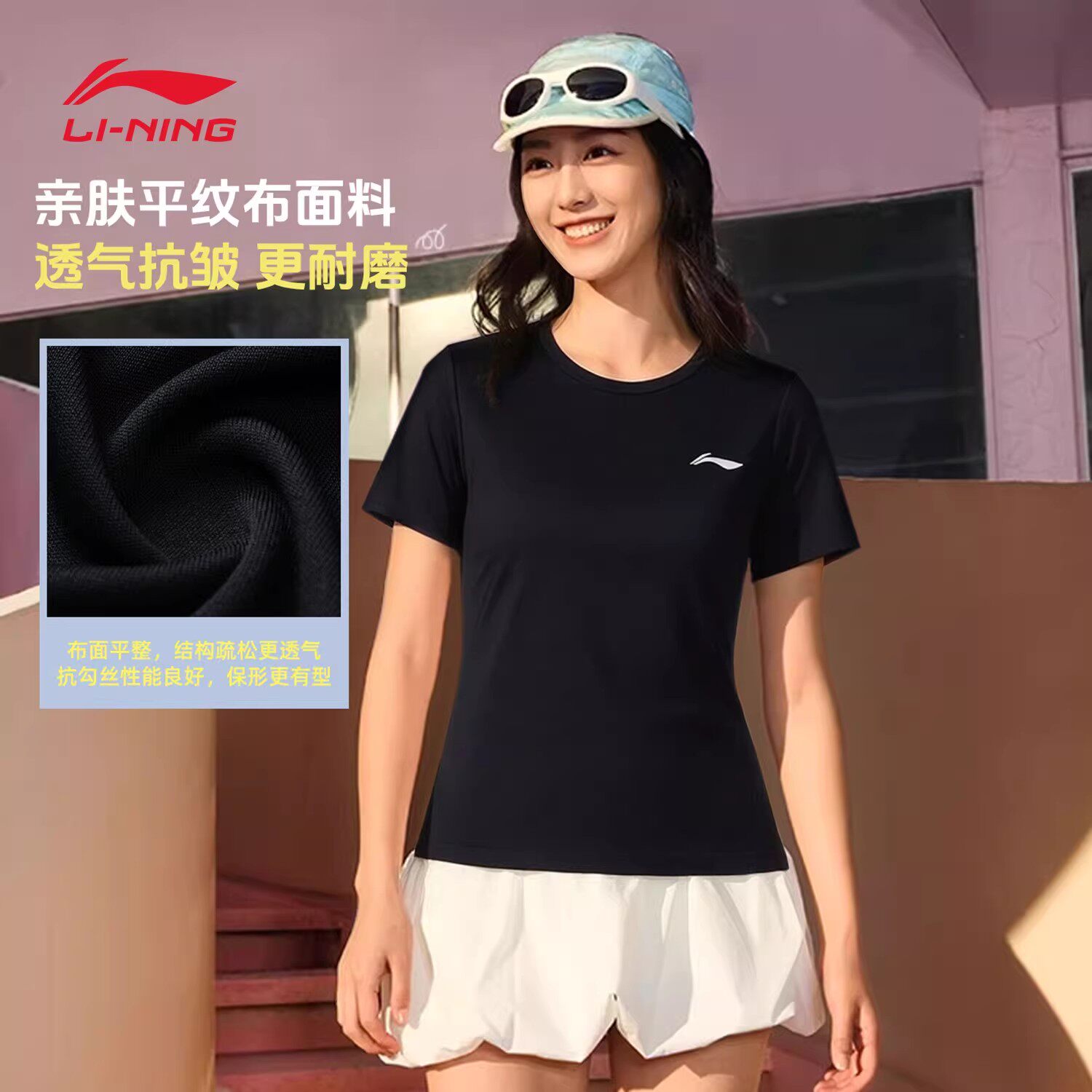 李宁凉爽速干短袖T恤女夏季新款黑色轻薄透气舒适跑步健身半袖衫