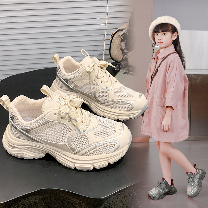 女童鞋2026春秋新款儿童网面老爹鞋女孩透气运动鞋大童休闲跑步鞋