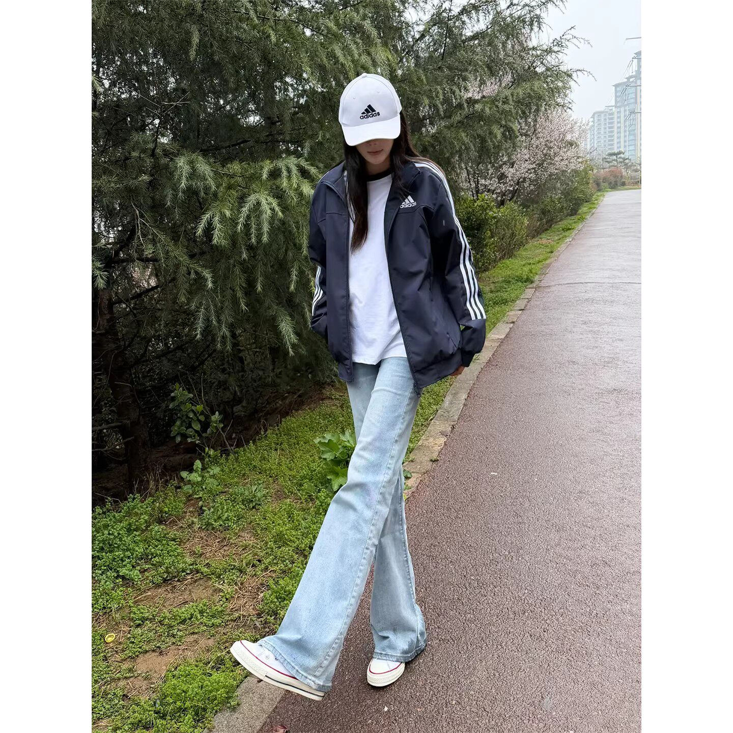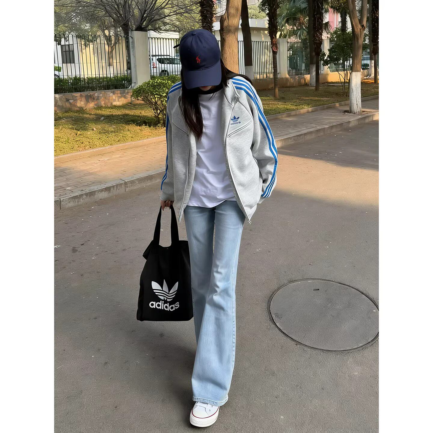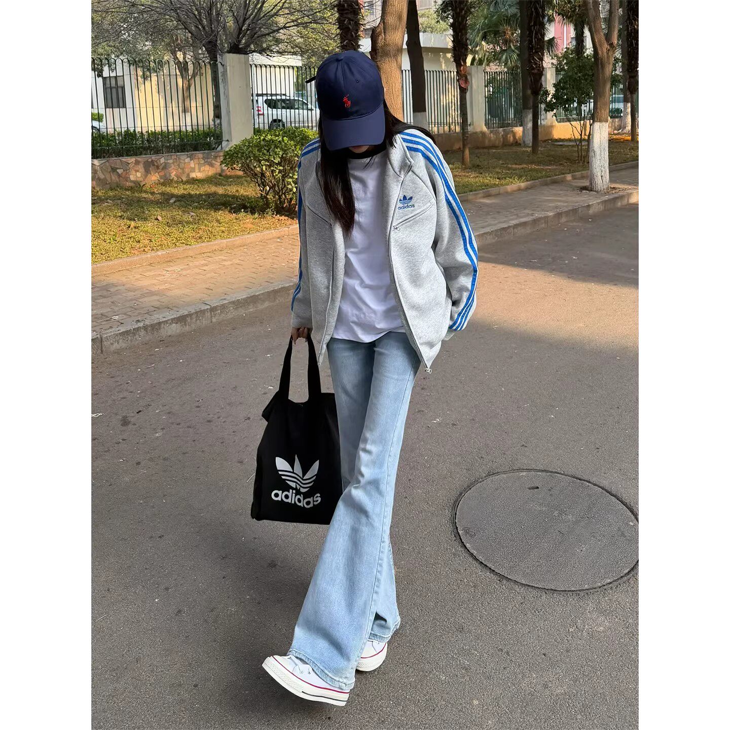浅蓝色微喇牛仔裤男女款春夏季美式高街直筒显瘦国潮舒适弯刀裤子