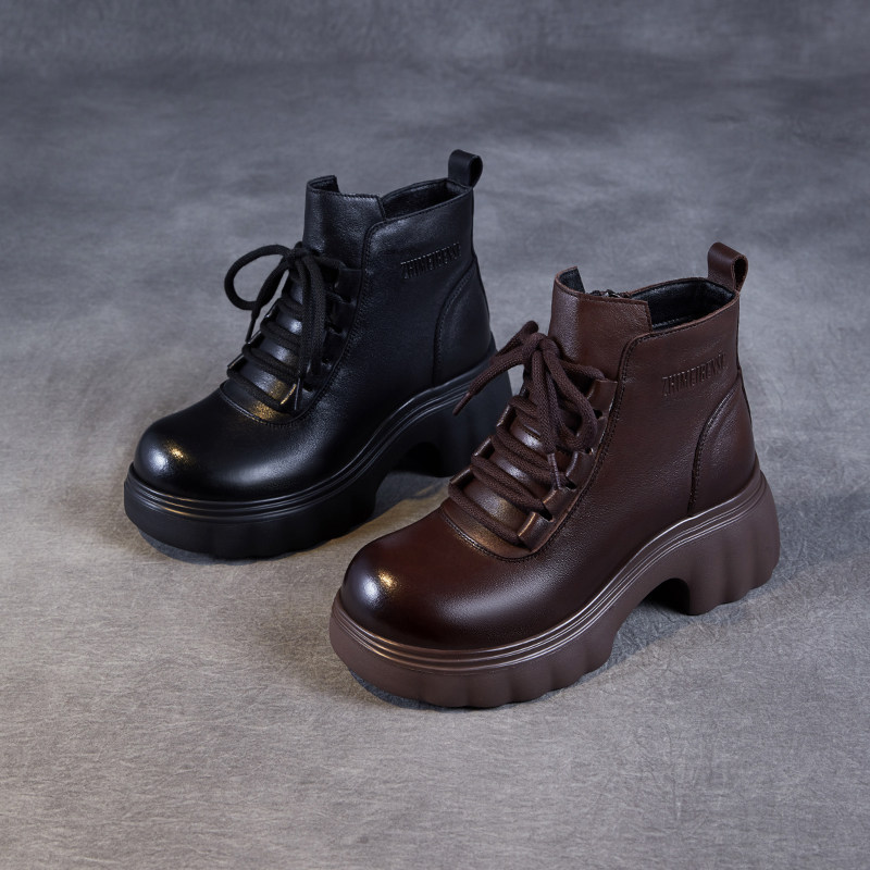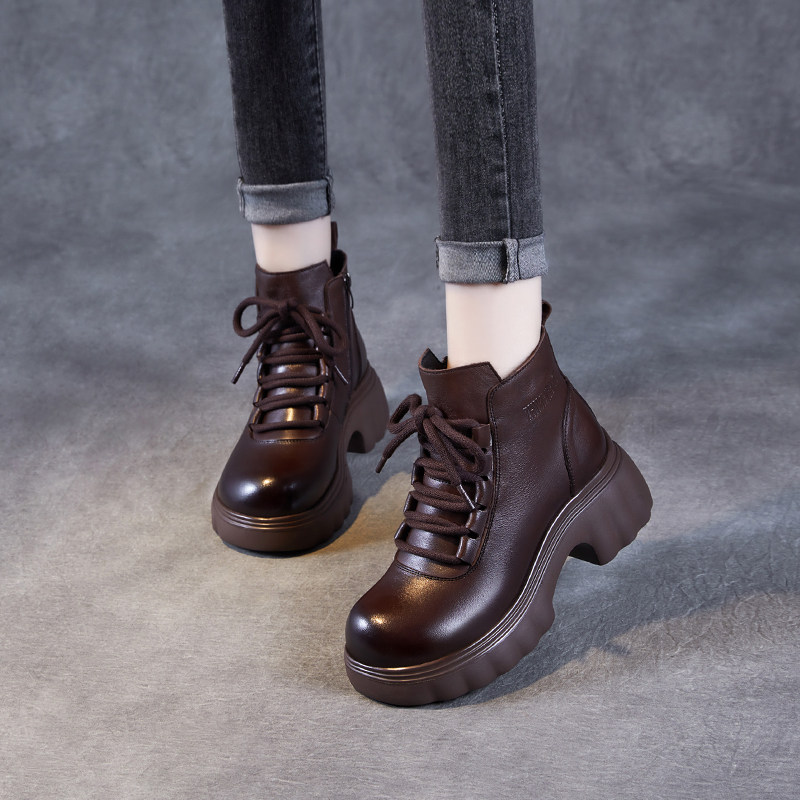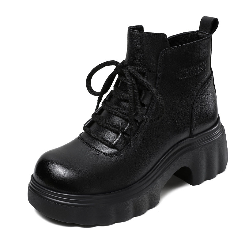 2025春季新款真皮女鞋厚底增高小短靴显瘦头层牛皮马丁靴休闲单鞋