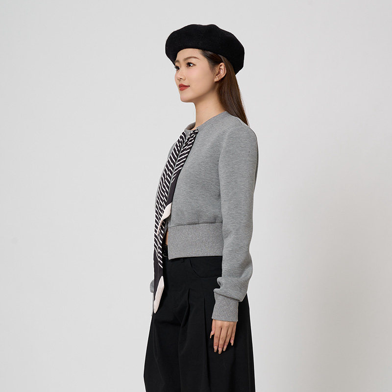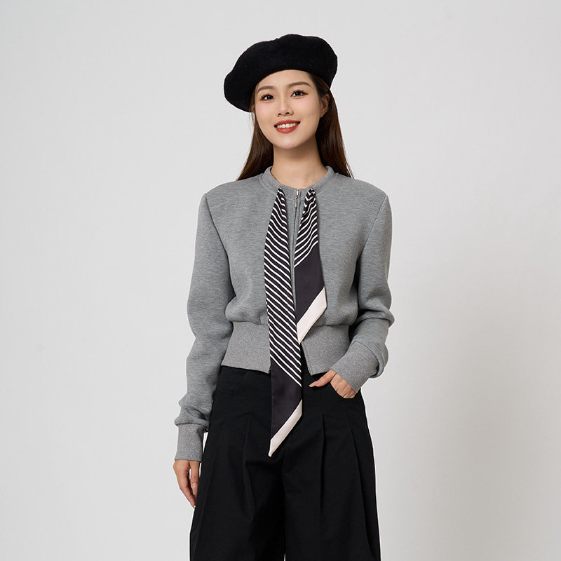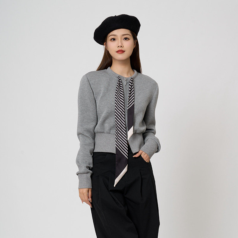 PIT灰色圆领无帽卫衣拉链开衫外套女2026春季新款长袖百搭上衣