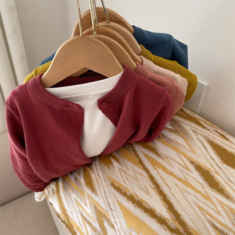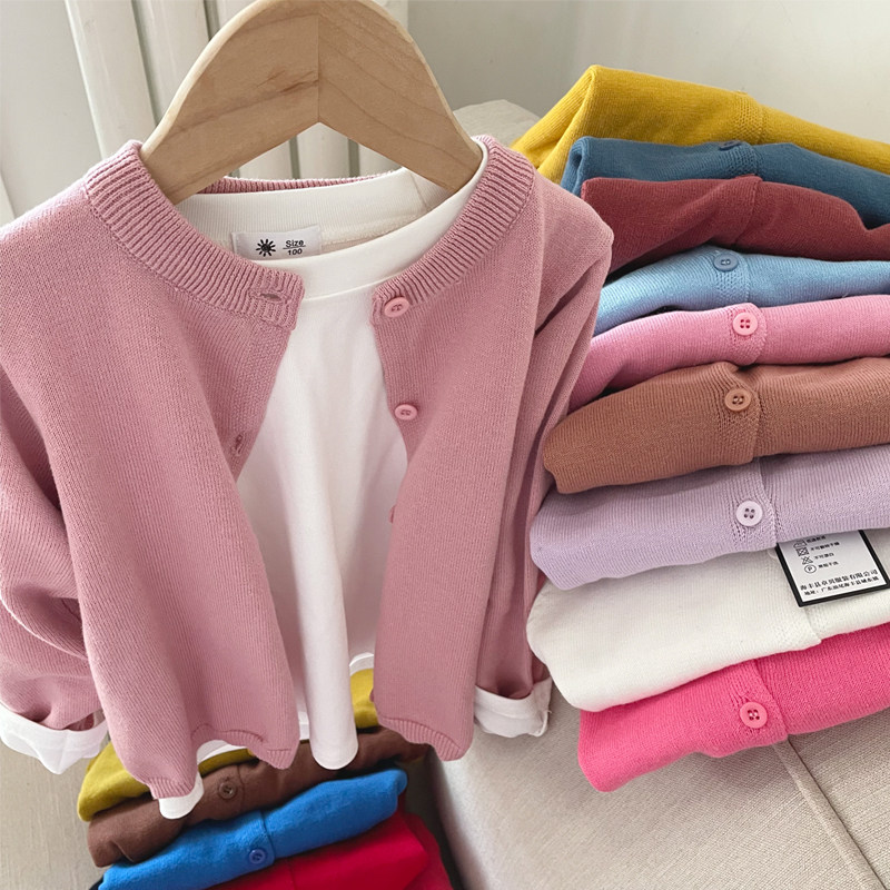 儿童全棉薄款针织开衫2026春秋新款男女童宝宝柔软毛衣披肩空调衫
